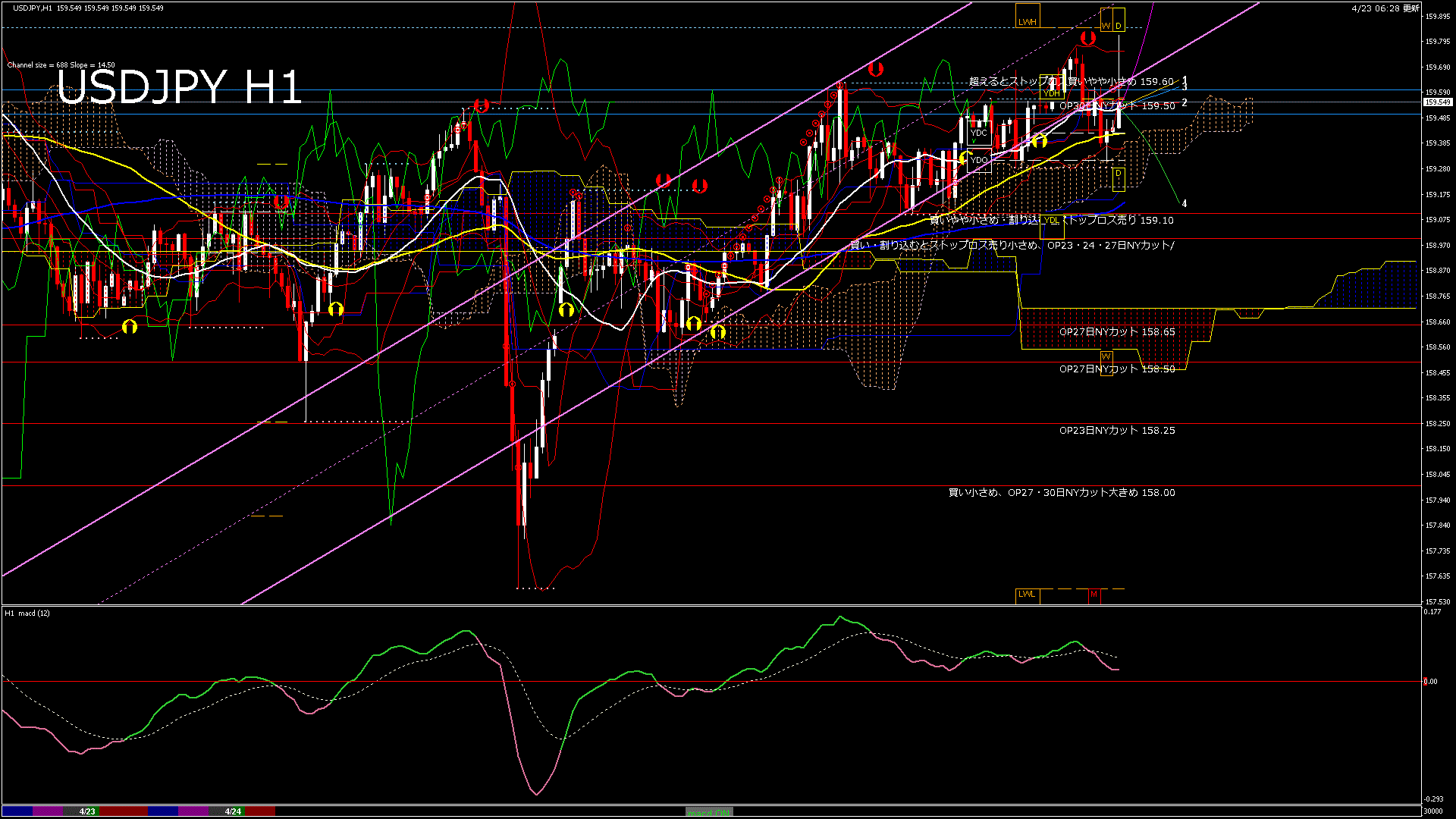 USDJPY-H4移動平均線と現在値(RSI)-2026.4.24 2:00:00