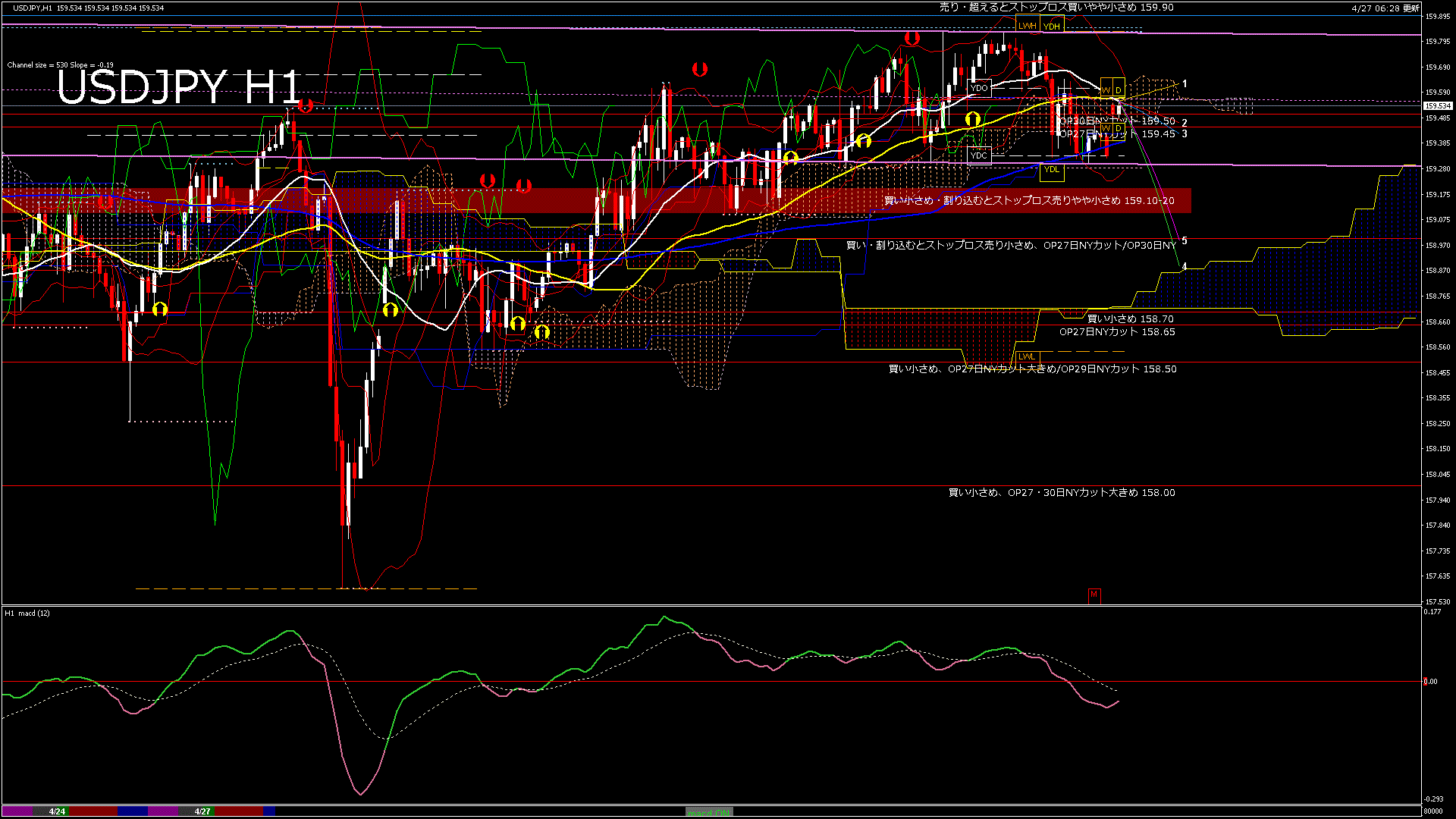 USDJPY-H1移動平均線と現在値(RSI)-2026.4.27 8:00:00