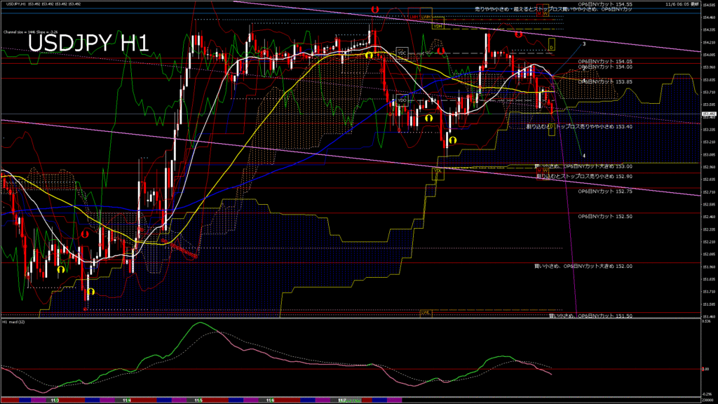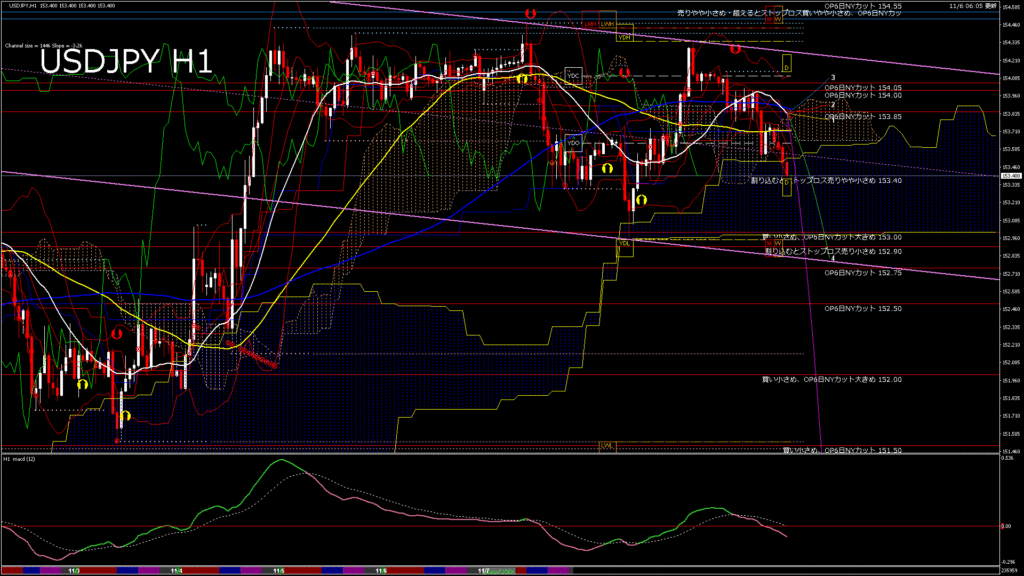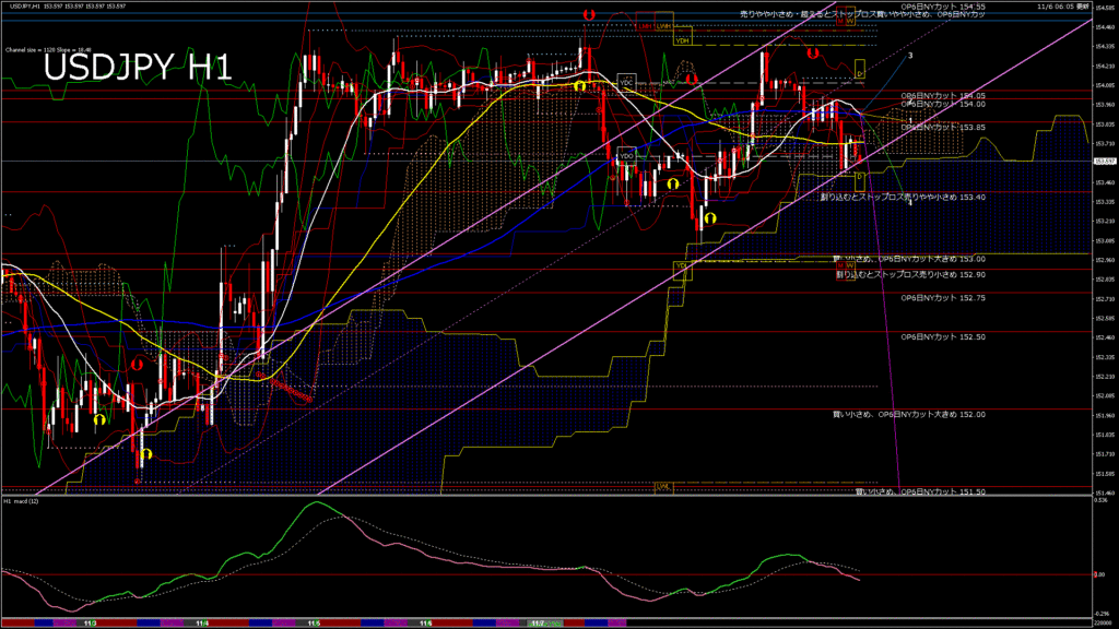情報 USDJPY-H1移動平均線と現在値(RSI)-2025.11.7 5:00:00
