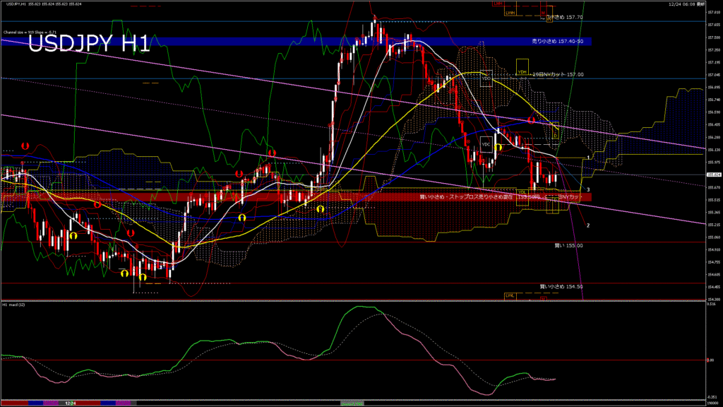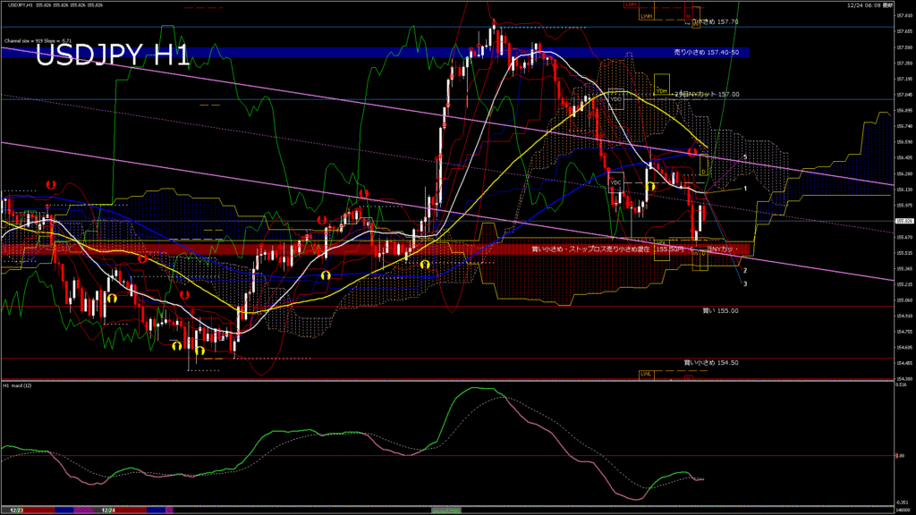 情報 USDJPY-H4移動平均線と現在値(RSI)-2025.12.24 19:00:06