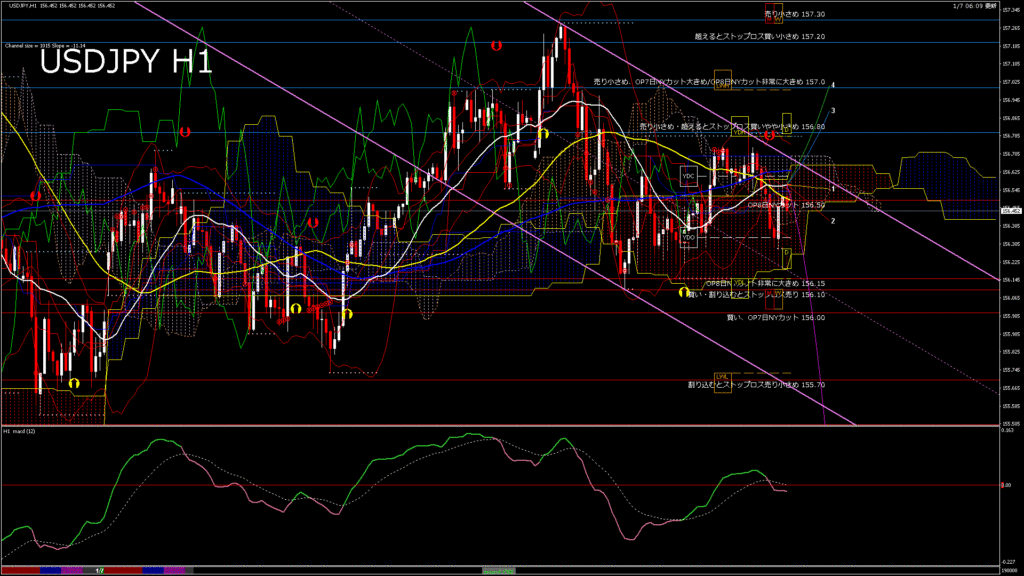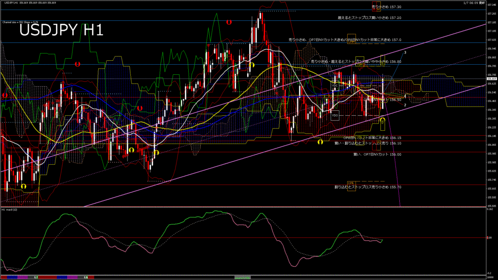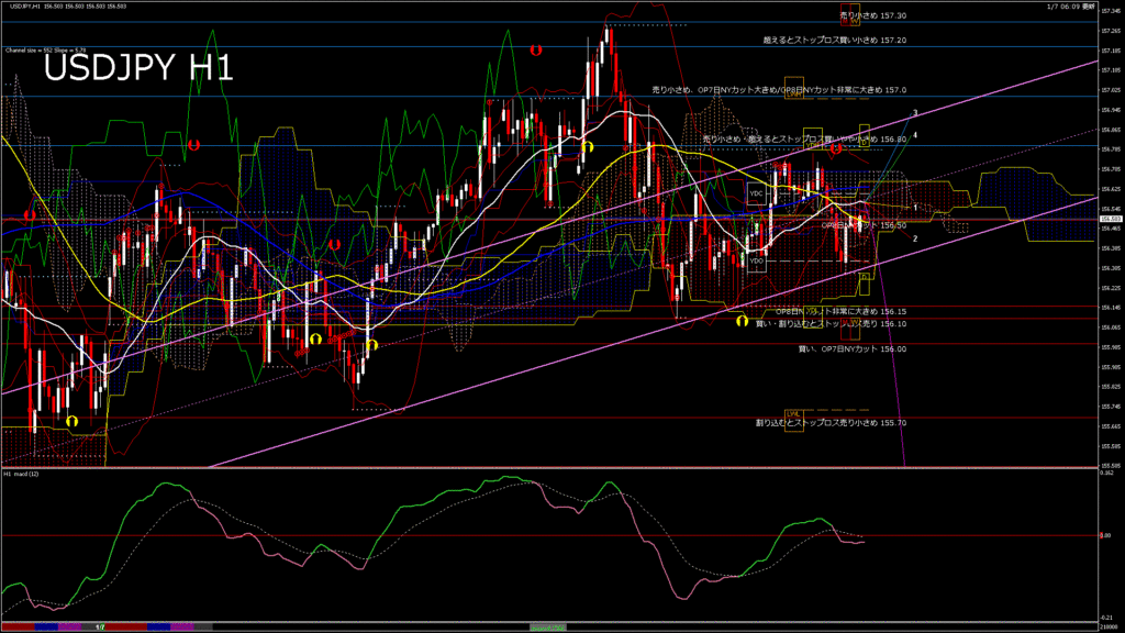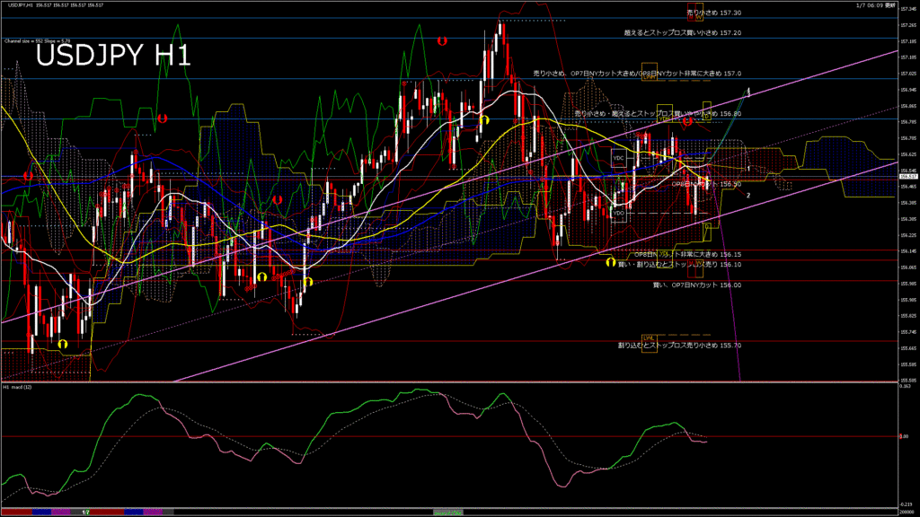 情報 USDJPY-H1移動平均線と現在値(RSI)-2026.1.8 3:00:00