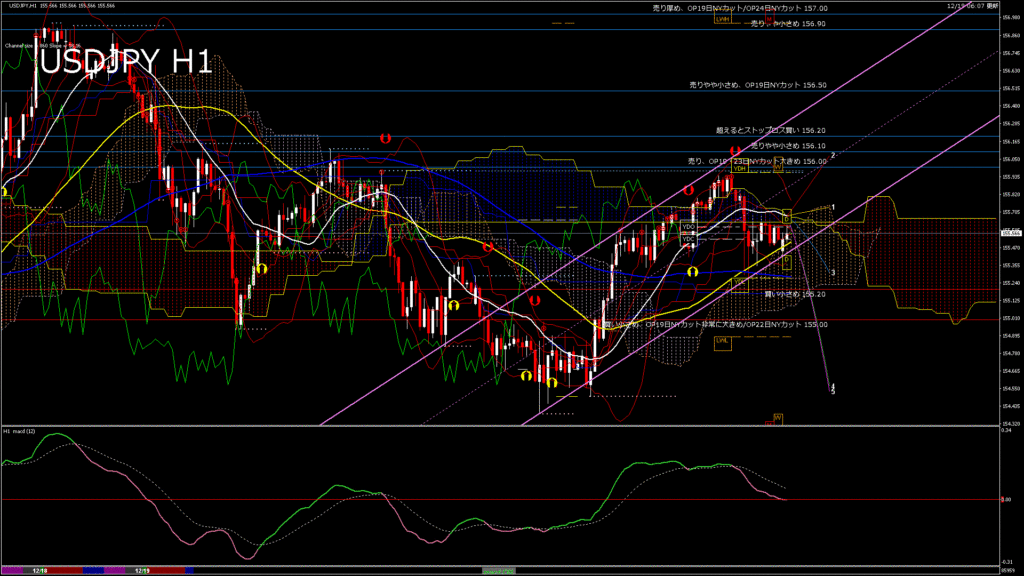 情報 USDJPY-H1移動平均線と現在値(RSI)-2025.12.19 17:00:00