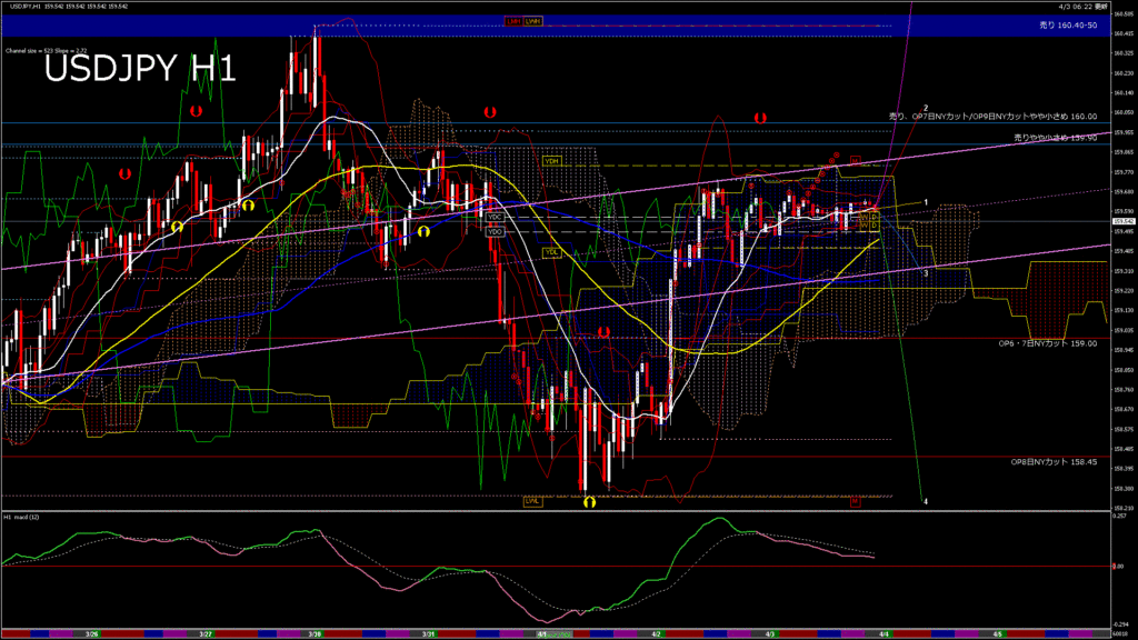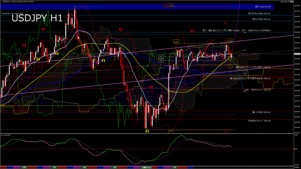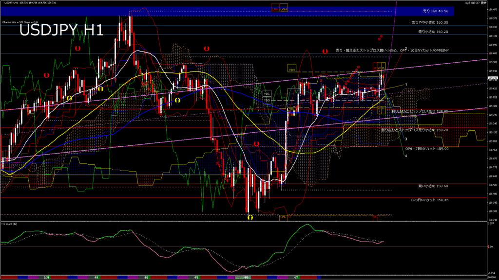 情報 USDJPY-H1移動平均線と現在値(RSI)-2026.4.6 15:00:00