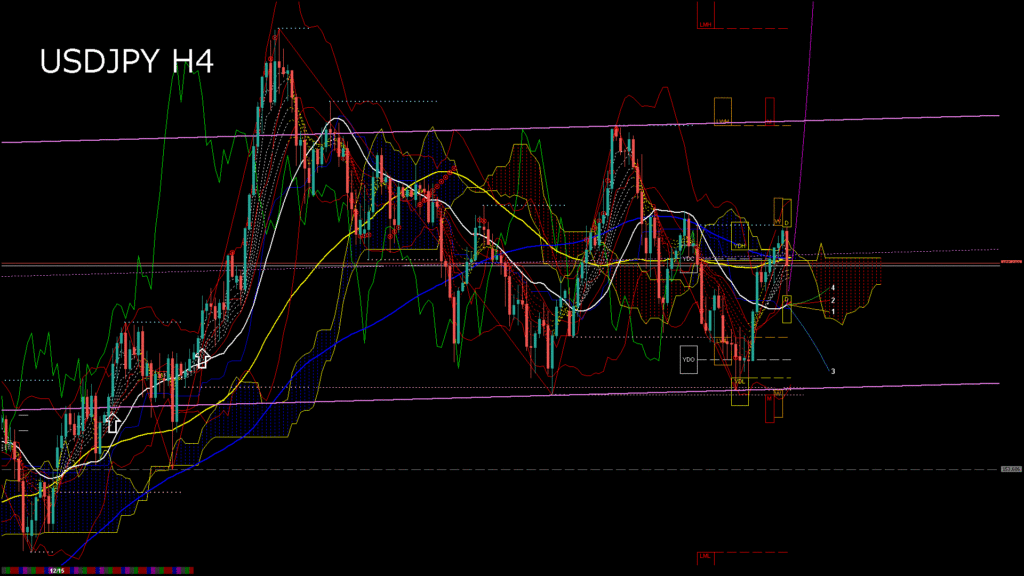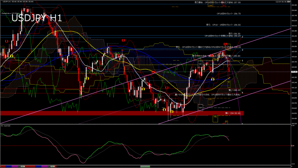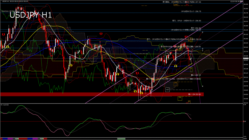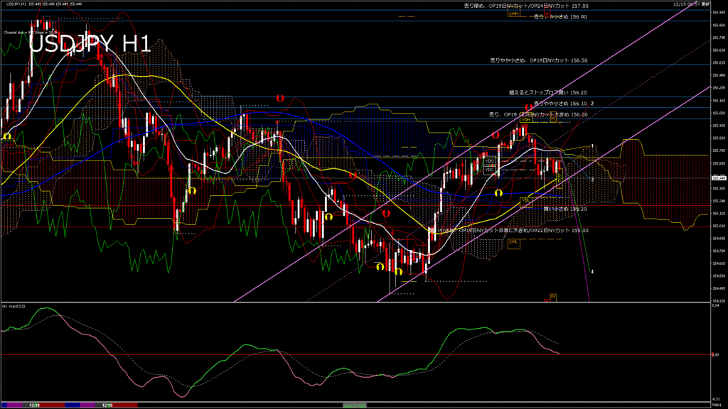 情報 USDJPY-H4移動平均線と現在値(RSI)-2025.12.19 7:00:04