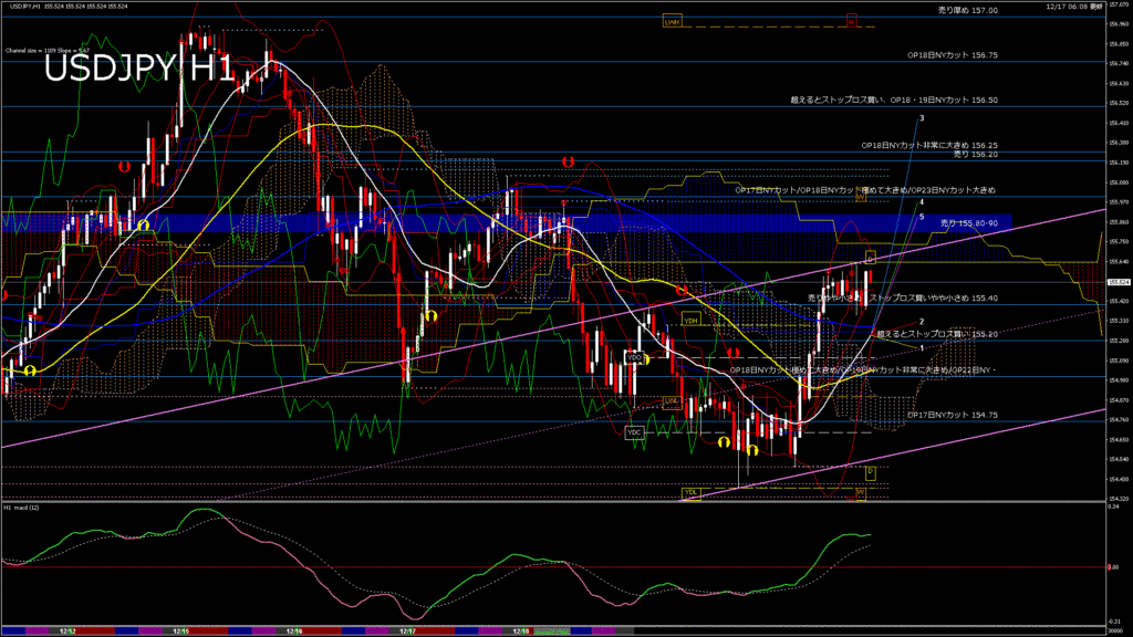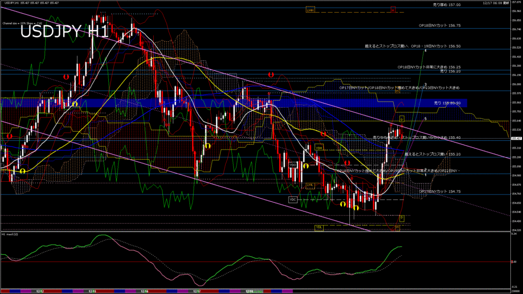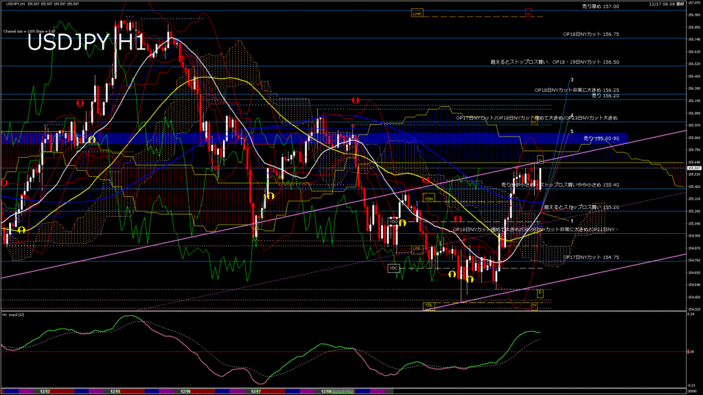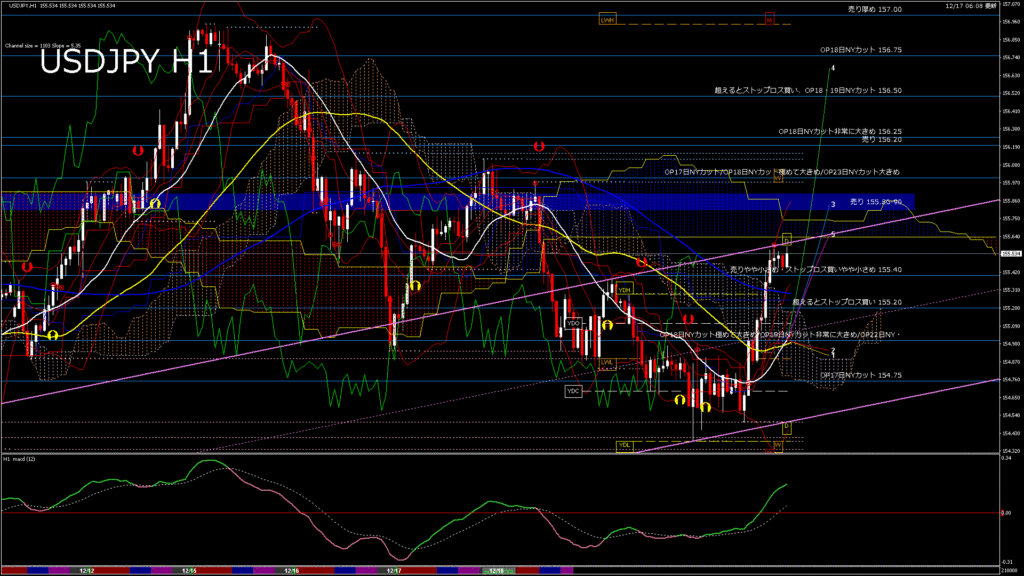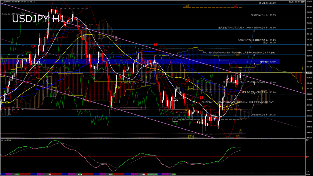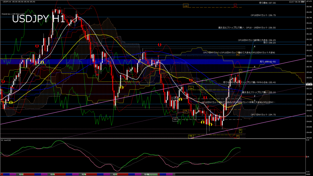 情報 USDJPY-H1移動平均線と現在値(RSI)-2025.12.18 5:00:00