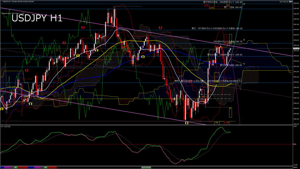 情報 USDJPY-H1移動平均線と現在値(RSI)-2026.4.3 6:00:00