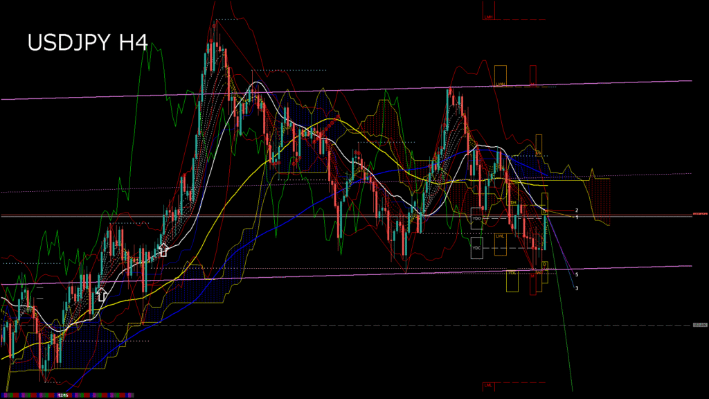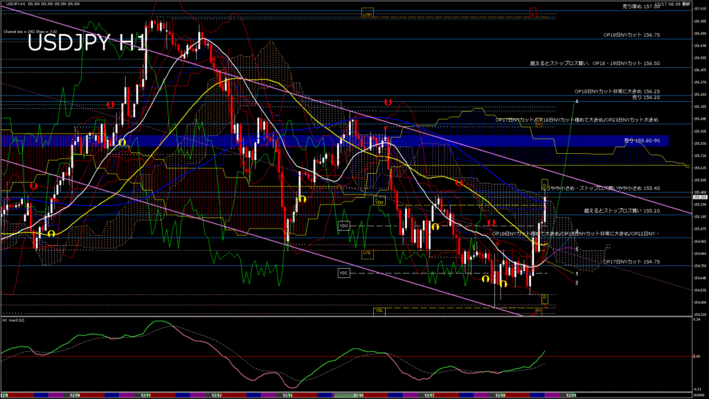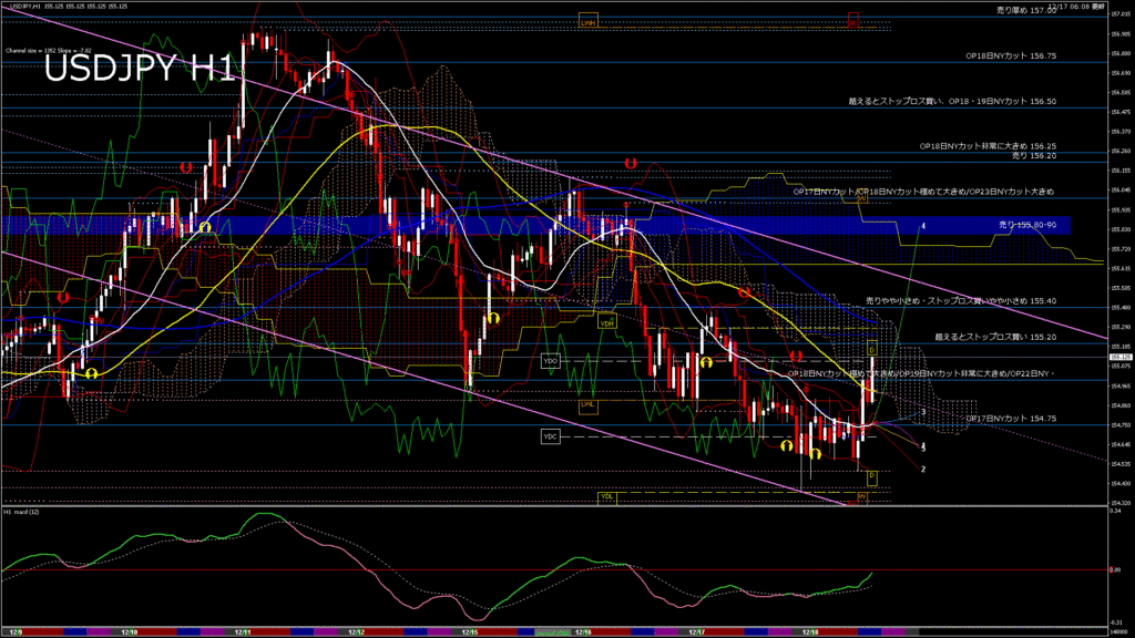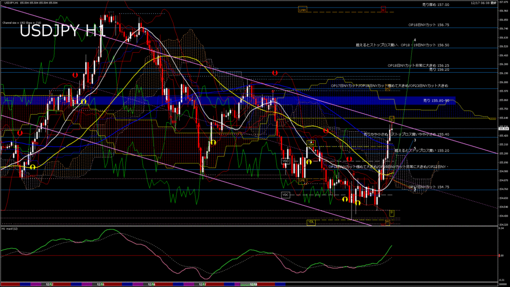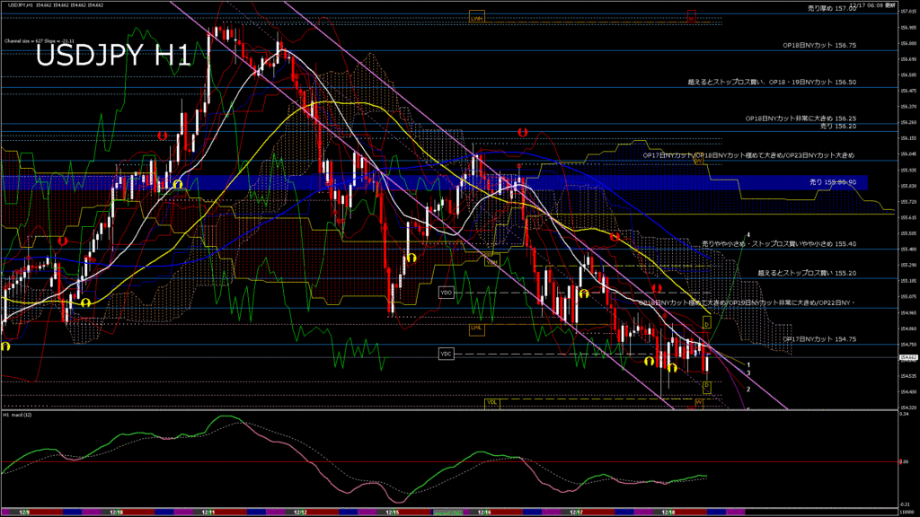 情報 USDJPY-H4移動平均線と現在値(RSI)-2025.12.17 19:00:07