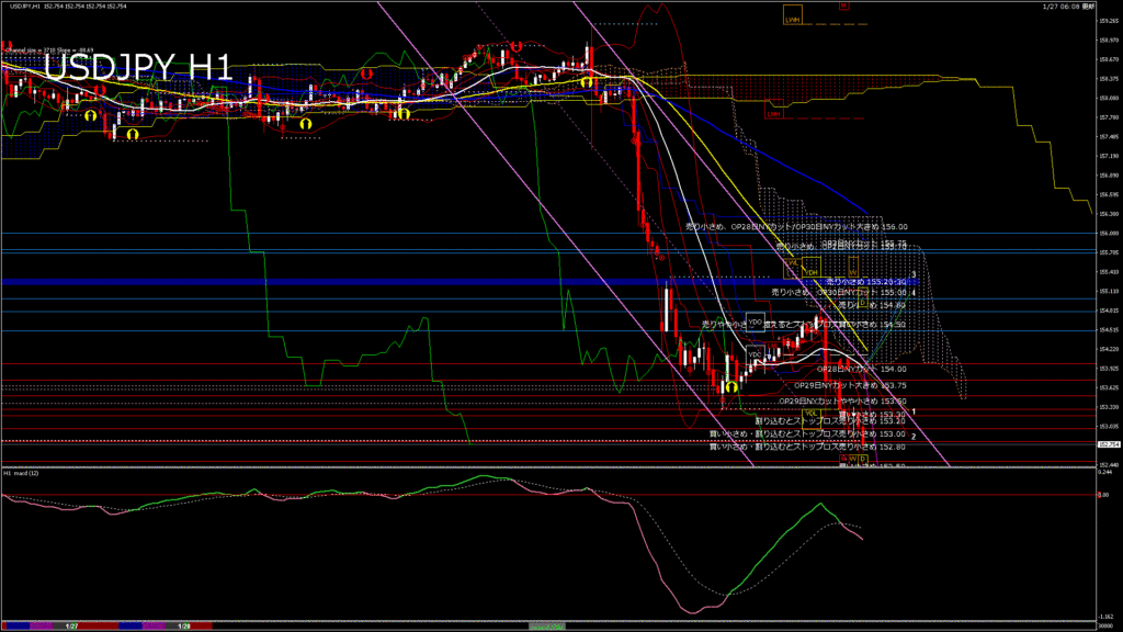 情報 USDJPY-H1移動平均線と現在値(RSI)-2026.1.28 3:00:00