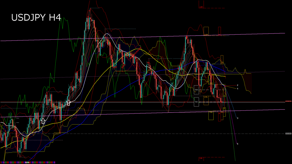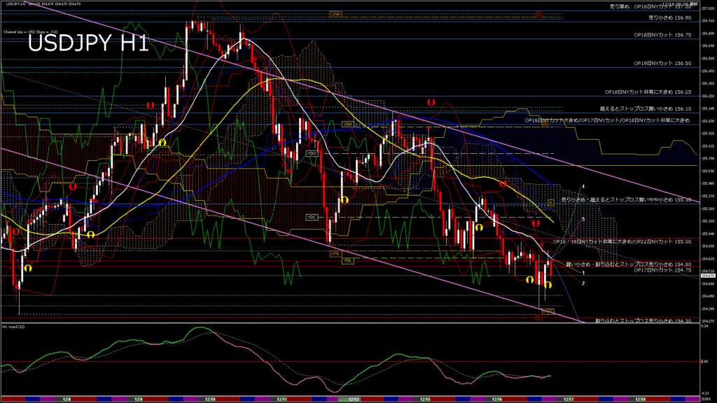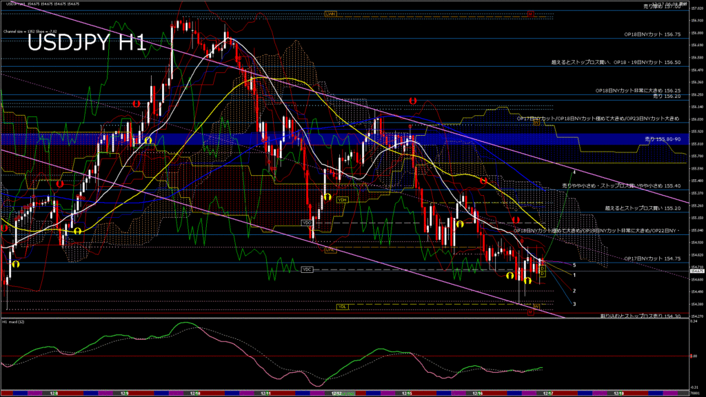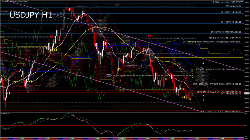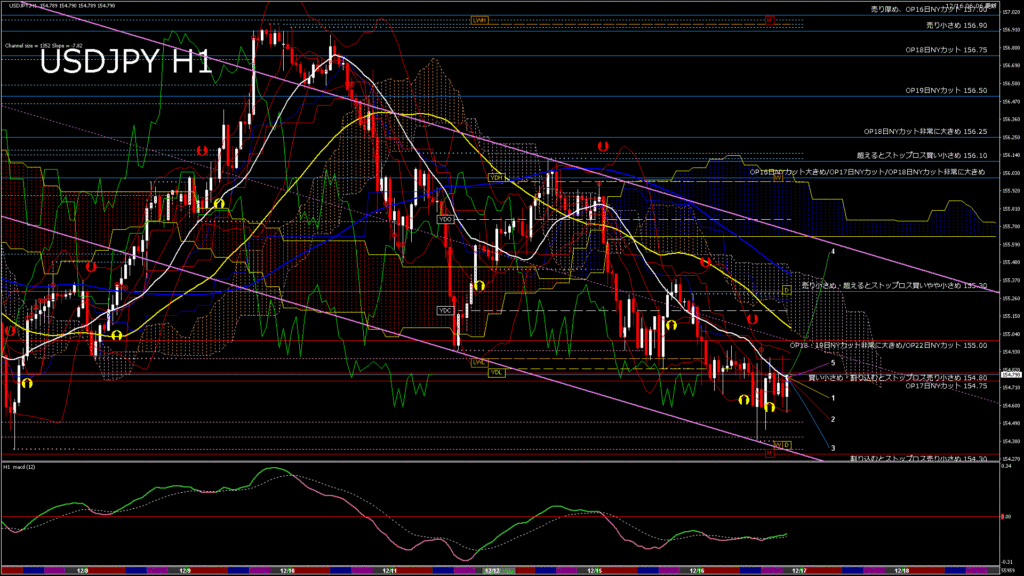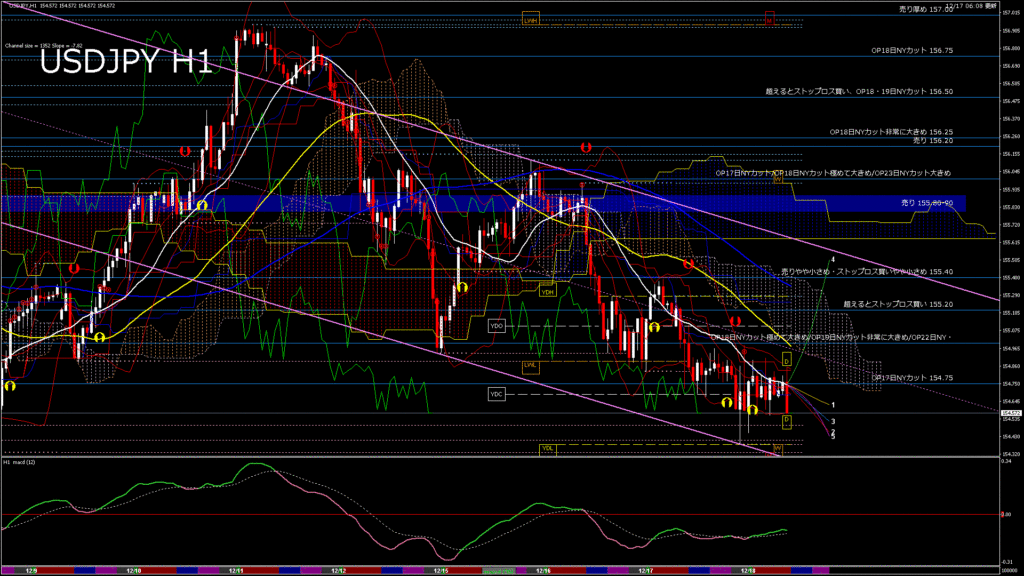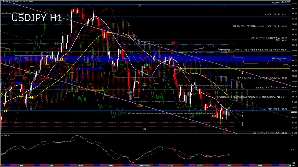情報 USDJPY-H4移動平均線と現在値(RSI)-2025.12.17 11:00:04