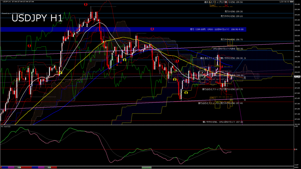 情報 USDJPY-H1移動平均線と現在値(RSI)-2026.1.21 11:00:00