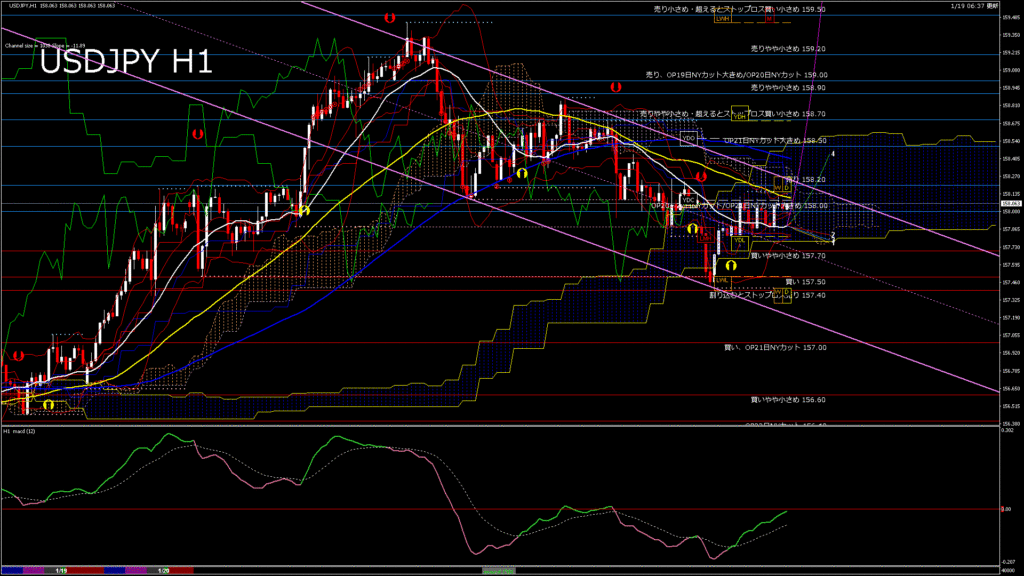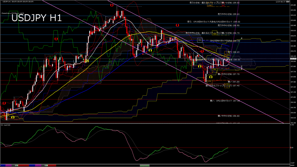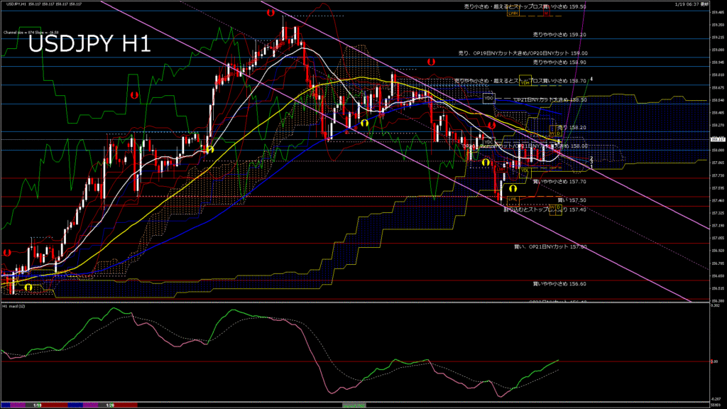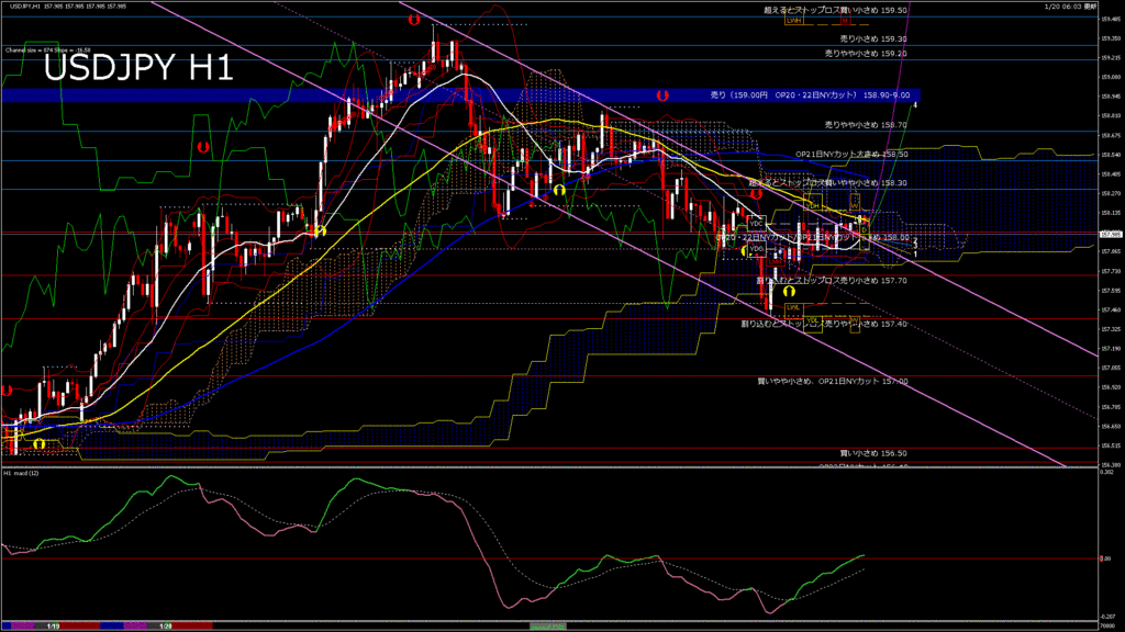 情報 USDJPY-H4移動平均線と現在値(RSI)-2026.1.20 7:00:05