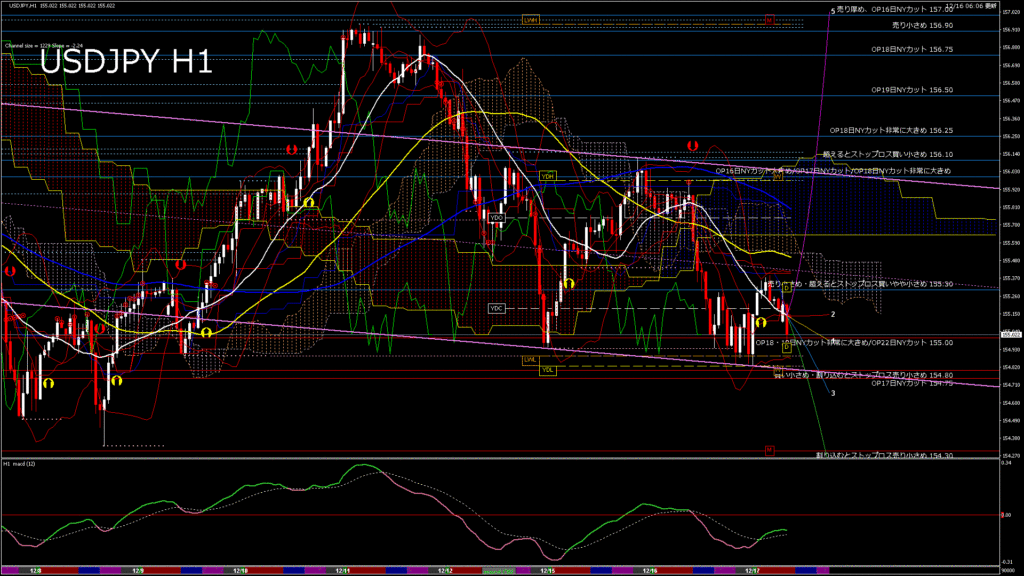 情報 USDJPY-H1移動平均線と現在値(RSI)-2025.12.16 17:00:00