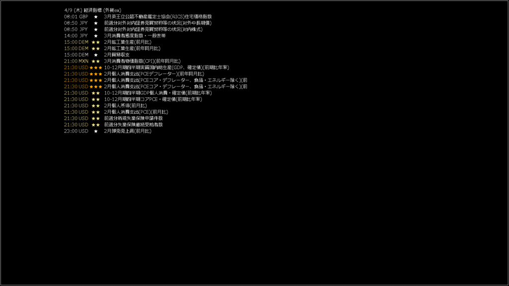 ASK :158.869 BID :158.846 20日移動平均線 :158.441 50日移動平均線 :159.034 75日移動平均線 :159.221 100日移動平均線:159.313 200日移動平均線:159.314 RSIレベル(9日) : 65.47 移動平均線の状態: 下降パーフェクトオーダー中(下向きトレンド) RSIの状態 : RSIは正常範囲内です。 乖離の状態: ASK - 0.27% 適正(3%基準), BID - 0.26% 適正(3%基準) 20日移動平均乖離 ASKの乖離 : 428.3 BIDの乖離 : 405.3 50日移動平均乖離 ASKの乖離 : -165.4 BIDの乖離 : -188.4 75日移動平均乖離 ASKの乖離 : -351.9 BIDの乖離 : -374.9 100日移動平均乖離 ASKの乖離 : -444.3 BIDの乖離 : -467.3 200日移動平均乖離 ASKの乖離 : -445.4 BIDの乖離 : -468.4 フォーラム自由投稿 トクトク情報「いつかは海外住みたいな!* AIが考えたダイエットレシピ*