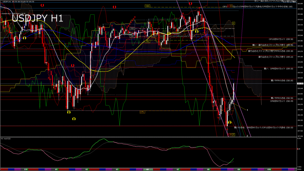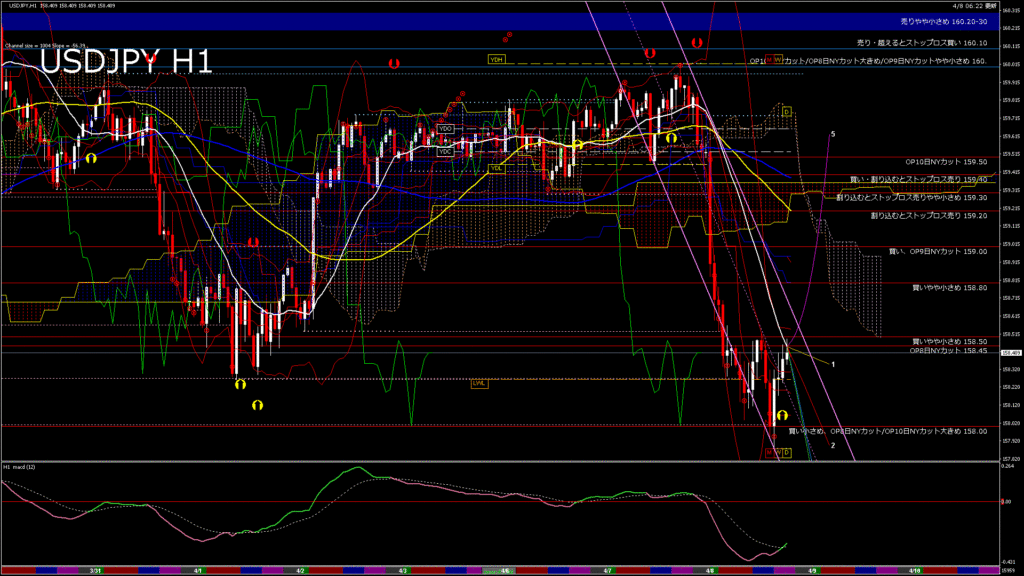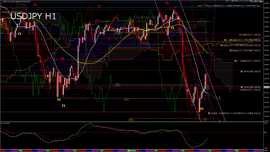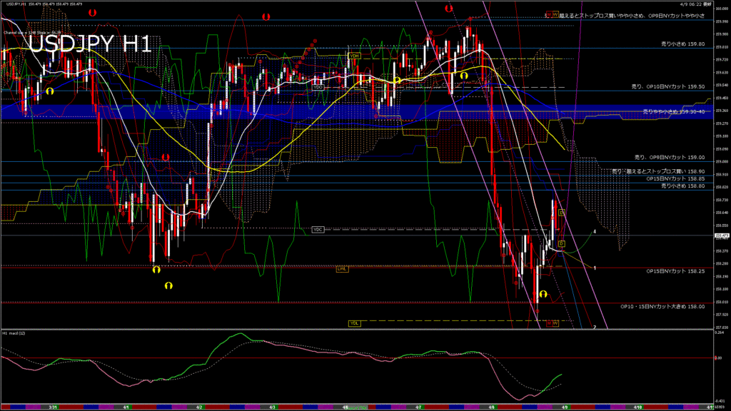 情報 USDJPY-H1移動平均線と現在値(RSI)-2026.4.9 10:00:00