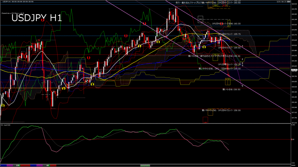 情報 USDJPY-H4移動平均線と現在値(RSI)-2026.4.1 6:00:03