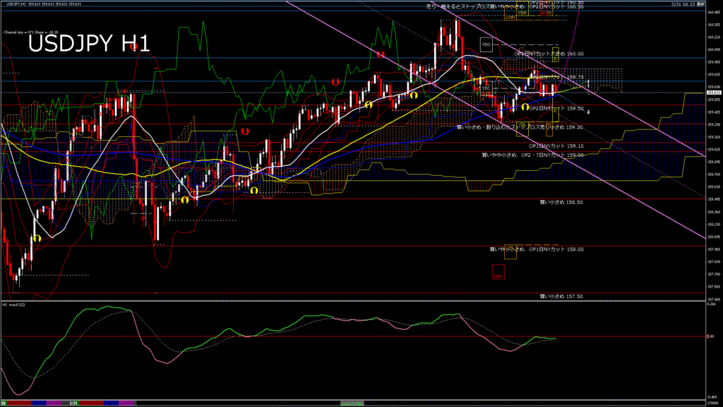 情報 USDJPY-H1移動平均線と現在値(RSI)-2026.3.31 20:00:00