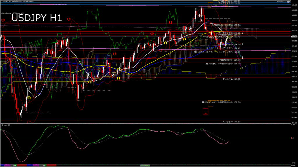 情報 USDJPY-H1移動平均線と現在値(RSI)-2026.3.31 14:00:00