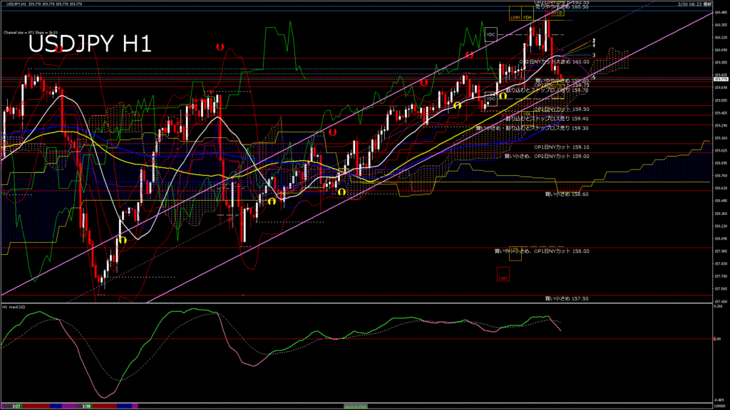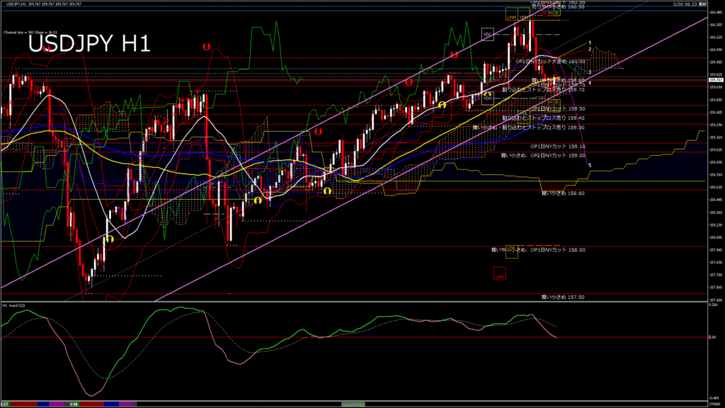 情報 USDJPY-H1移動平均線と現在値(RSI)-2026.3.30 20:00:00