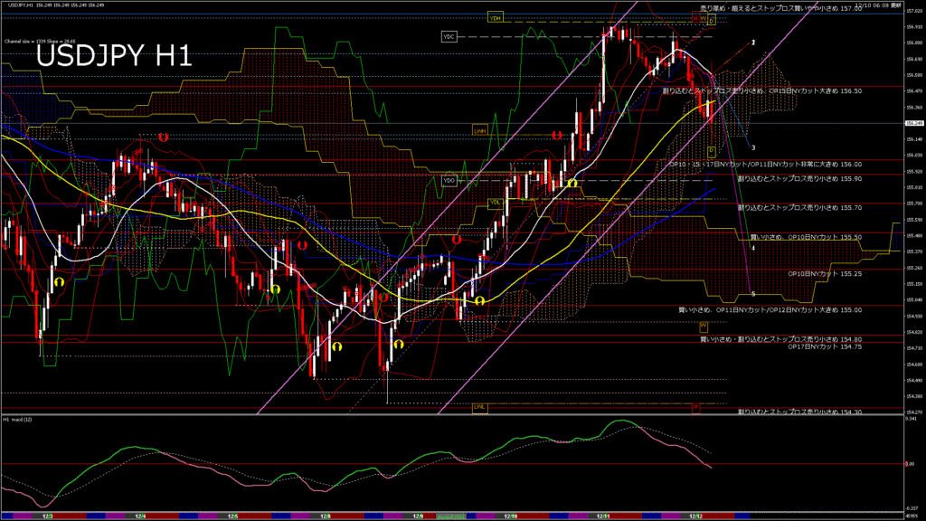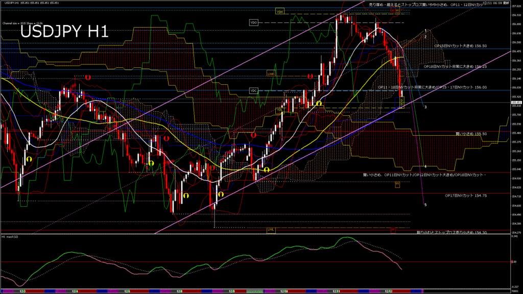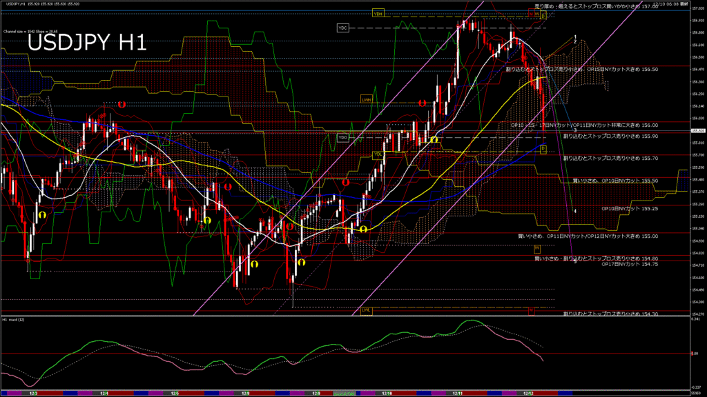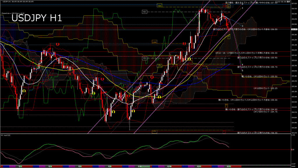 情報 USDJPY-H1移動平均線と現在値(RSI)-2025.12.11 8:00:00
