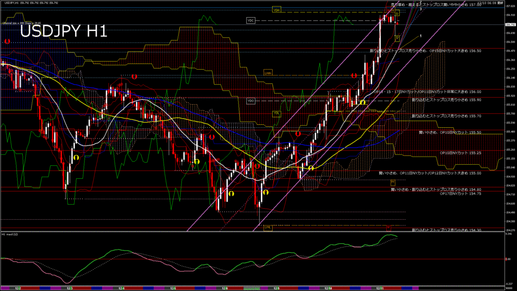 情報 USDJPY-H1移動平均線と現在値(RSI)-2025.12.10 15:00:00