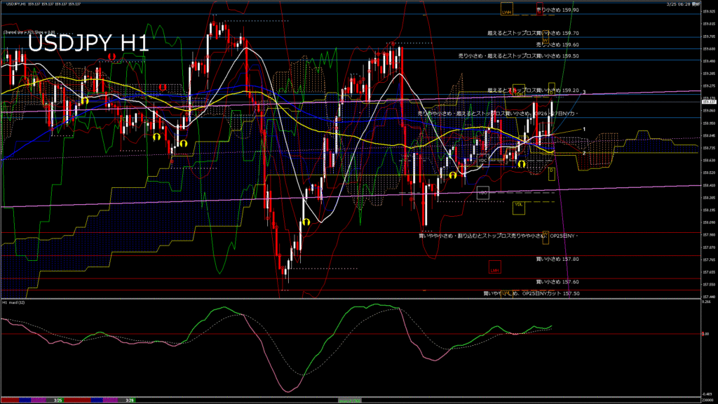情報 USDJPY-H1移動平均線と現在値(RSI)-2026.3.26 3:00:00