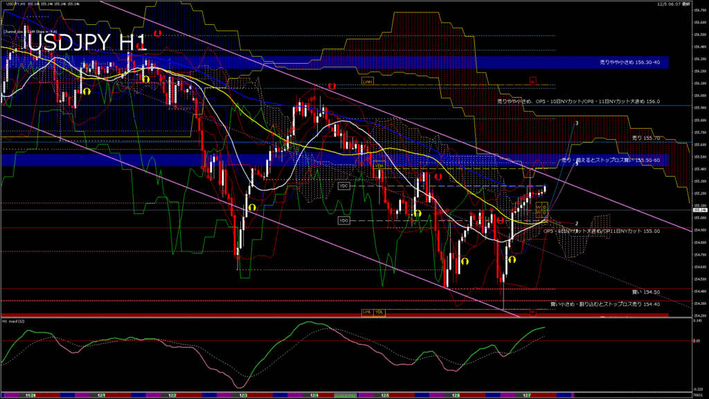 情報 USDJPY-H1移動平均線と現在値(RSI)-2025.12.8 8:00:00