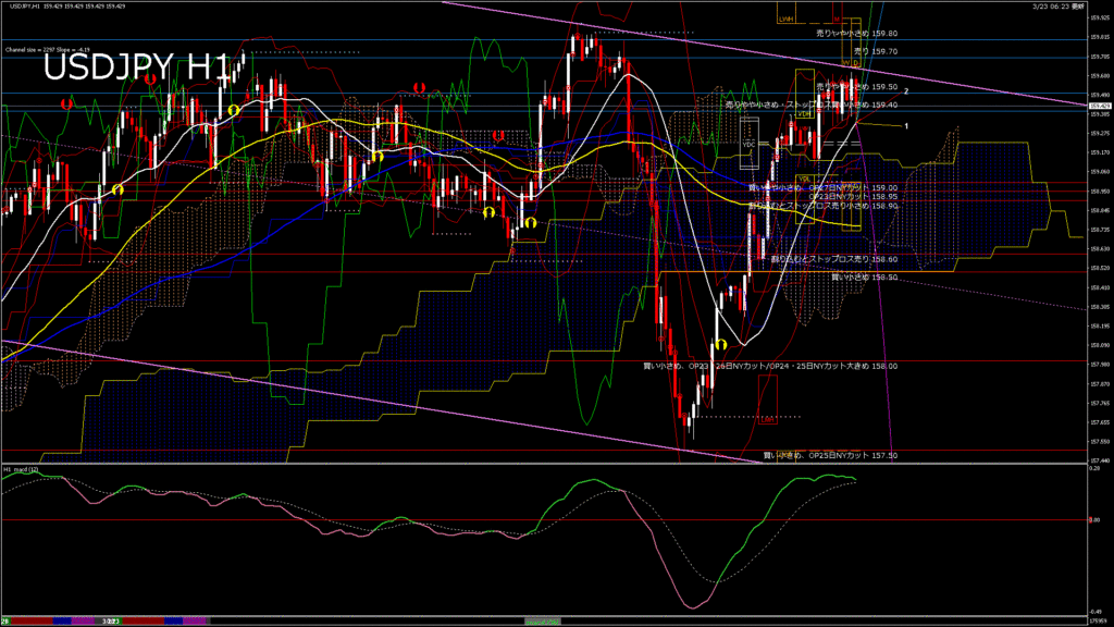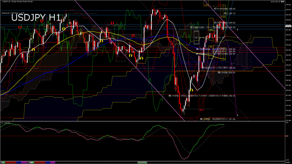 情報 USDJPY-H4移動平均線と現在値(RSI)-2026.3.23 19:00:06