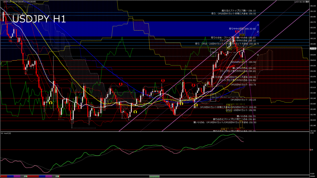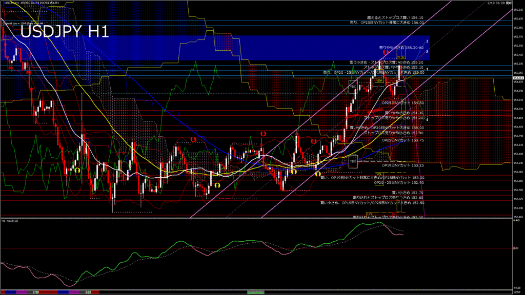 情報 USDJPY-H4移動平均線と現在値(RSI)-2026.2.20 3:00:00