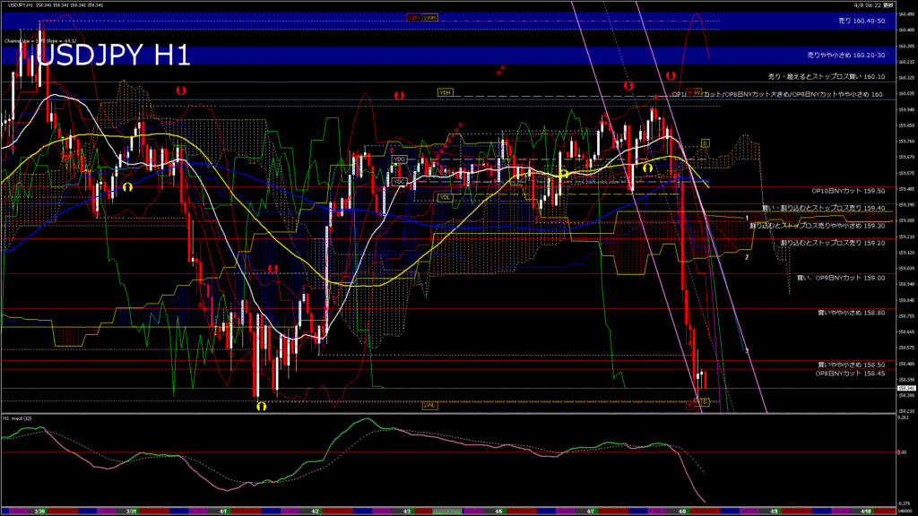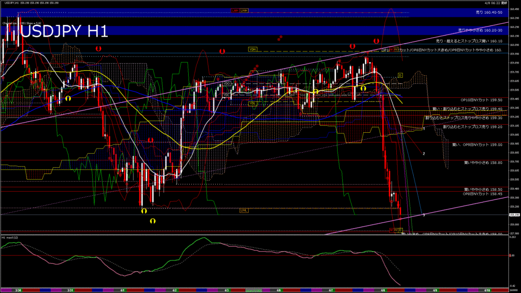 情報 USDJPY-H1移動平均線と現在値(RSI)-2026.4.8 17:00:00