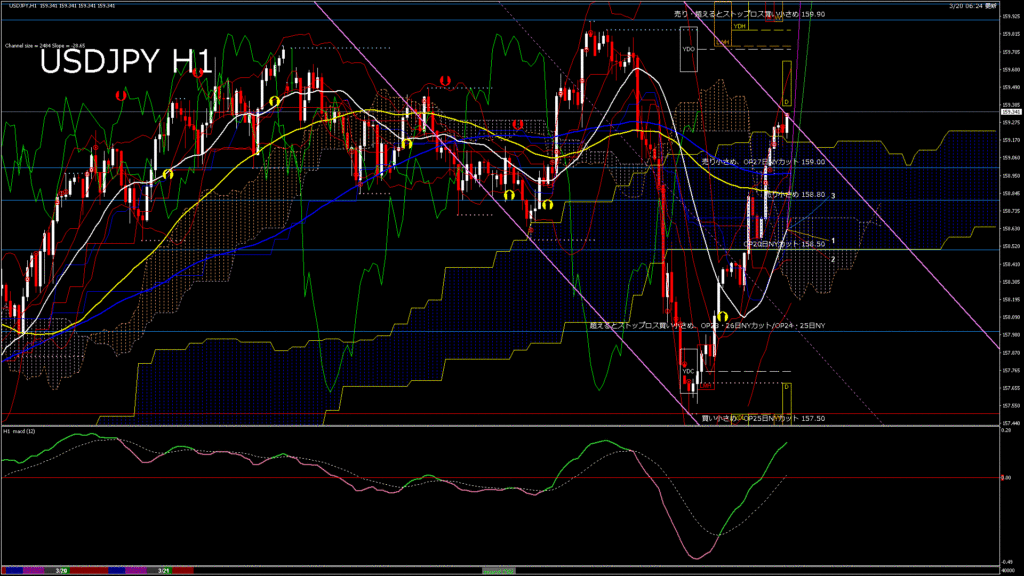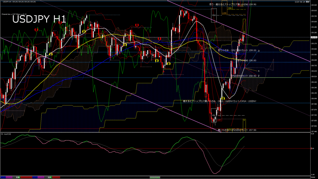 情報 USDJPY-H1移動平均線と現在値(RSI)-2026.3.21 5:00:00