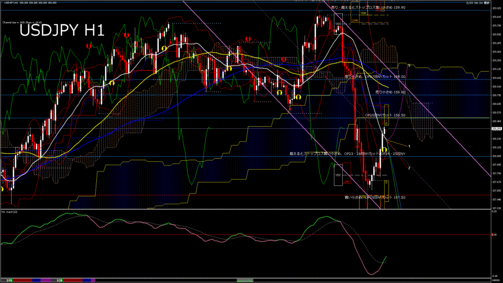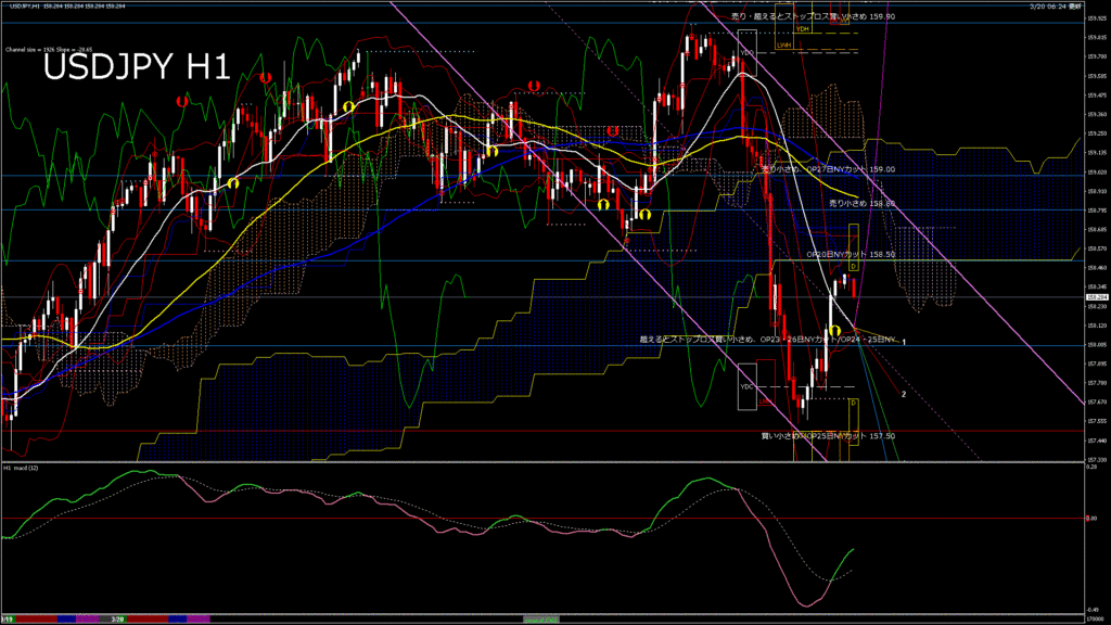 情報 USDJPY-H1移動平均線と現在値(RSI)-2026.3.20 21:00:00