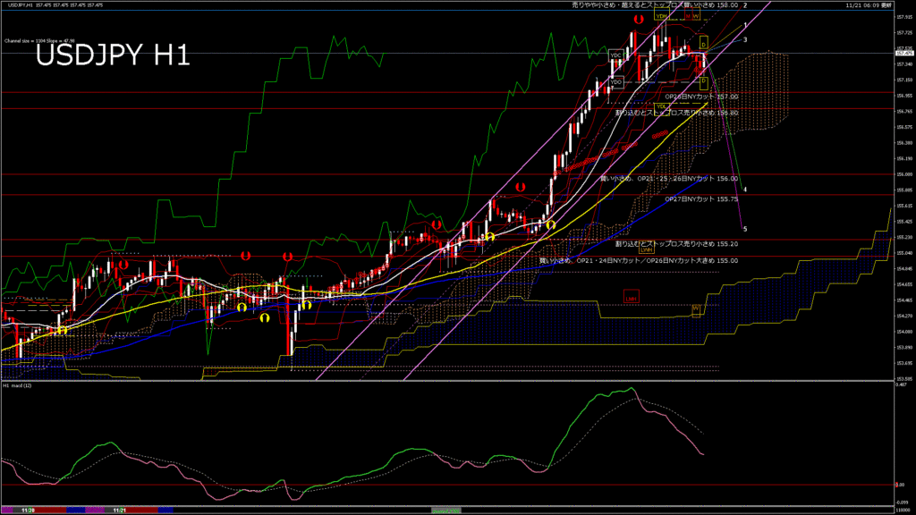 情報 USDJPY-H1移動平均線と現在値(RSI)-2025.11.21 16:00:00