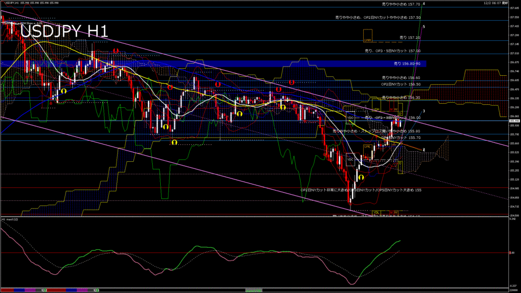 情報 USDJPY-H4移動平均線と現在値(RSI)-2025.12.2 23:00:05