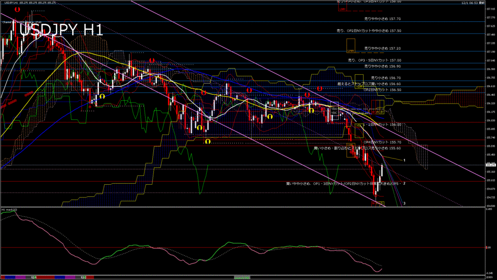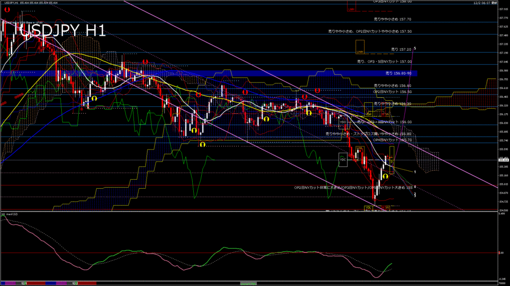 情報 USDJPY-H1移動平均線と現在値(RSI)-2025.12.2 7:00:00