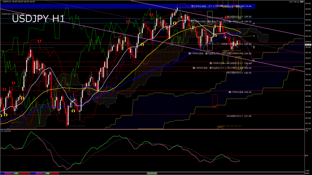 情報 USDJPY-H1移動平均線と現在値(RSI)-2026.3.18 8:00:00