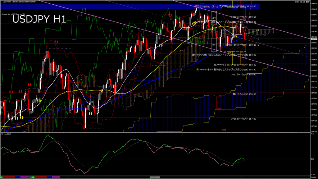 情報 USDJPY-H4移動平均線と現在値(RSI)-2026.3.17 23:00:06