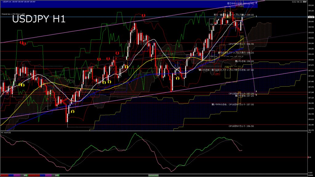 情報 USDJPY-H1移動平均線と現在値(RSI)-2026.3.13 1:00:00