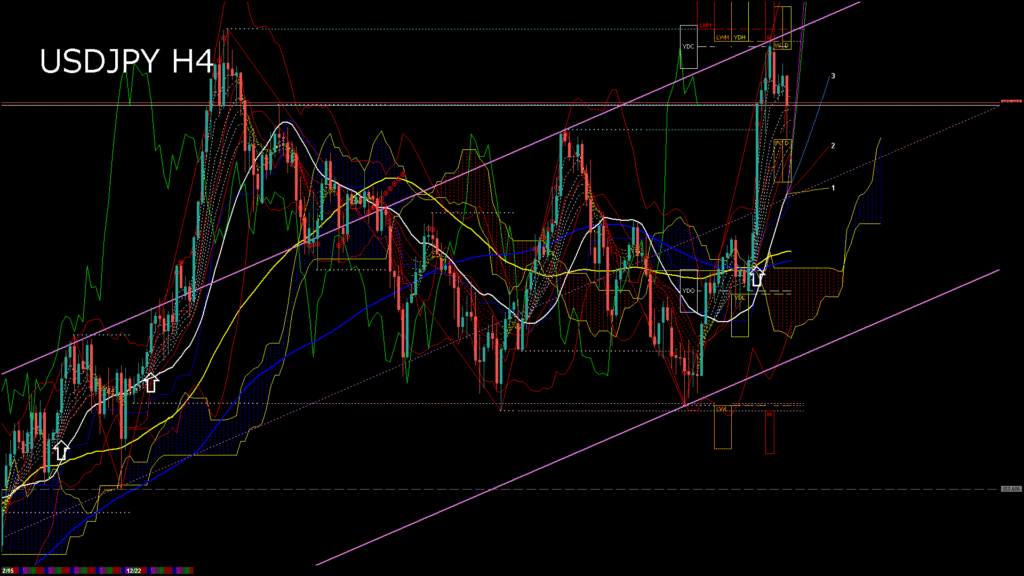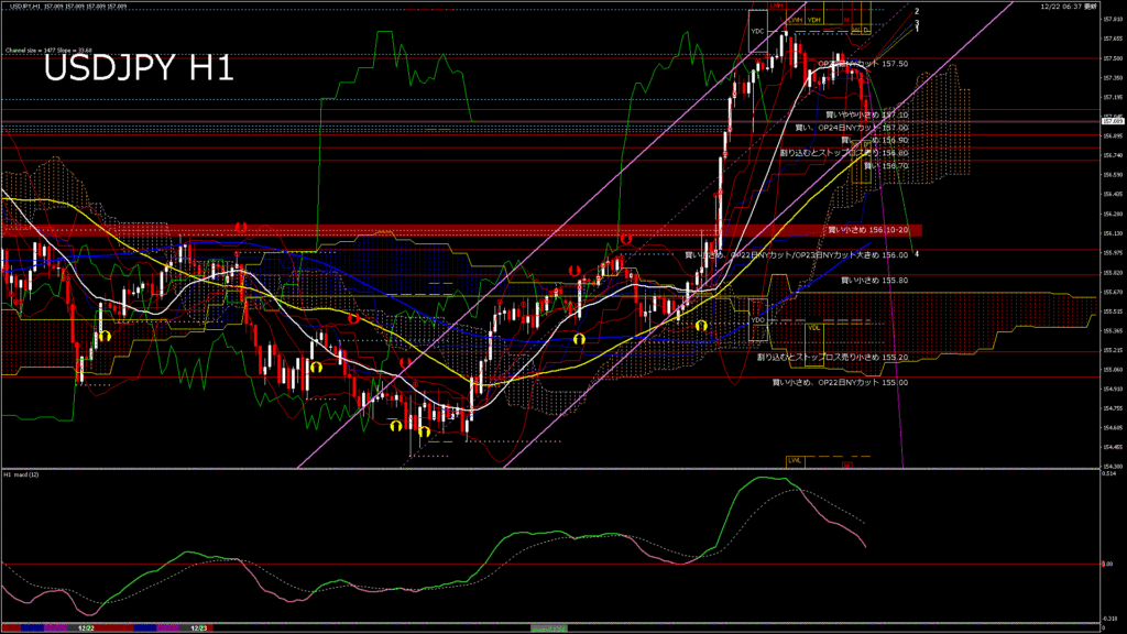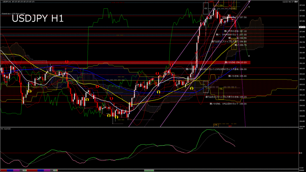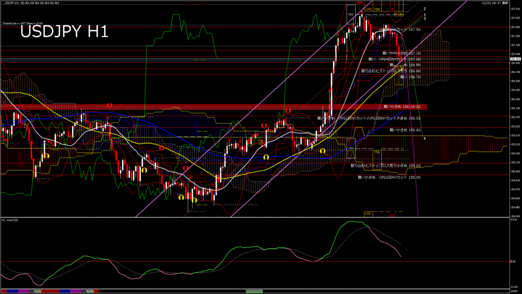 情報 USDJPY-H4移動平均線と現在値(RSI)-2025.12.23 3:00:01