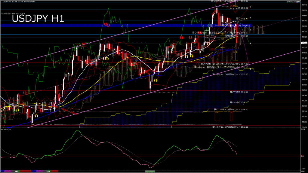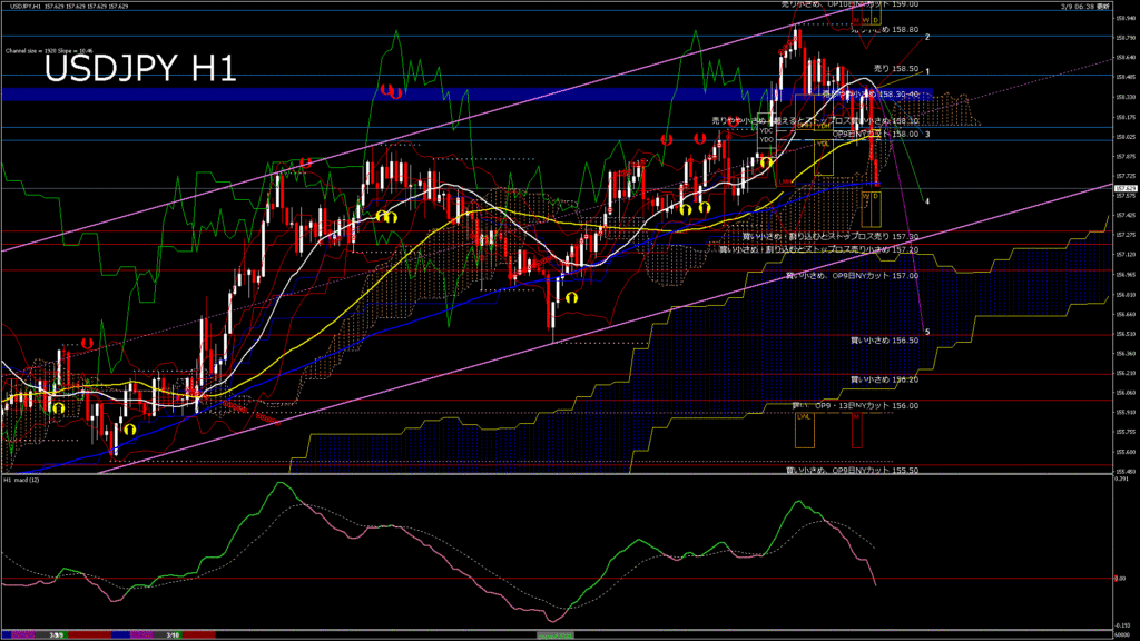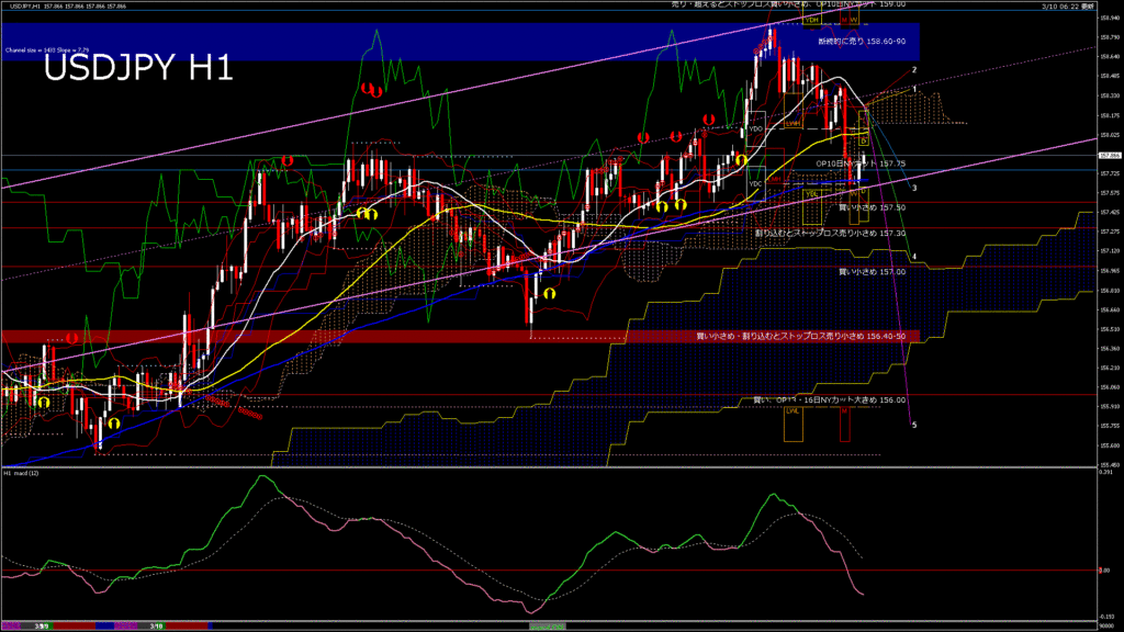 情報 USDJPY-H1移動平均線と現在値(RSI)-2026.3.10 10:00:00