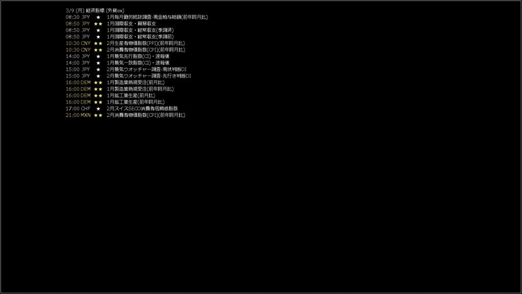 情報 USDJPY-本日の経済指標と日足移動平均線(RSI)-2026.3.9 7:00:10