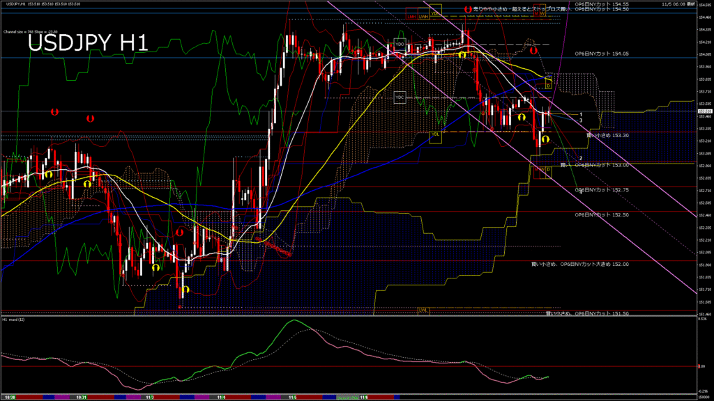 情報 USDJPY-H1移動平均線と現在値(RSI)-2025.11.5 15:00:00