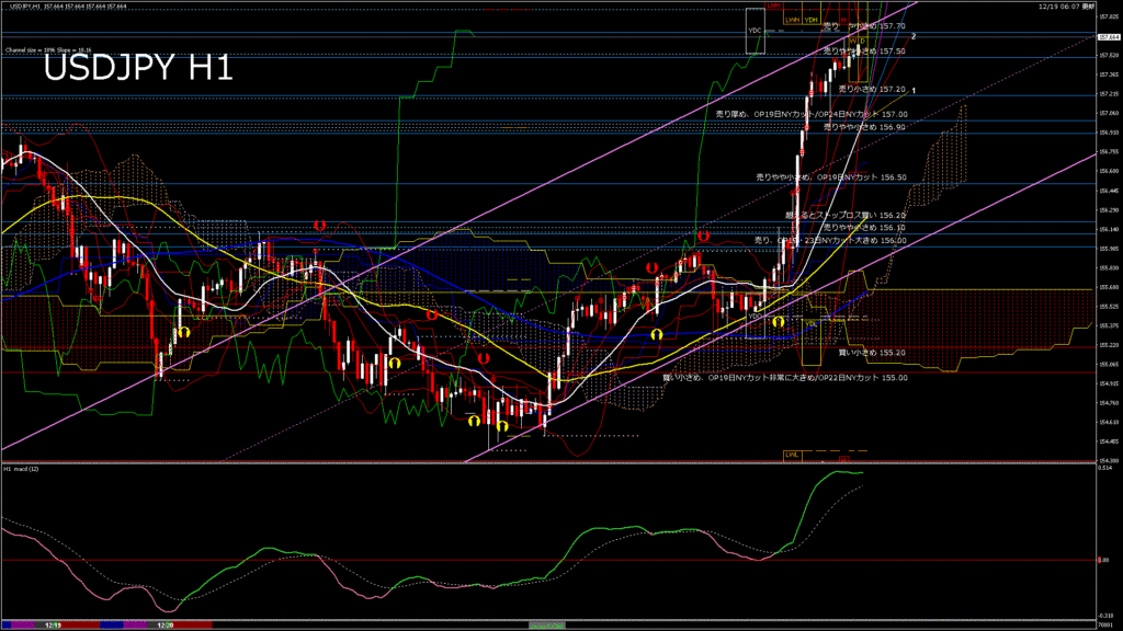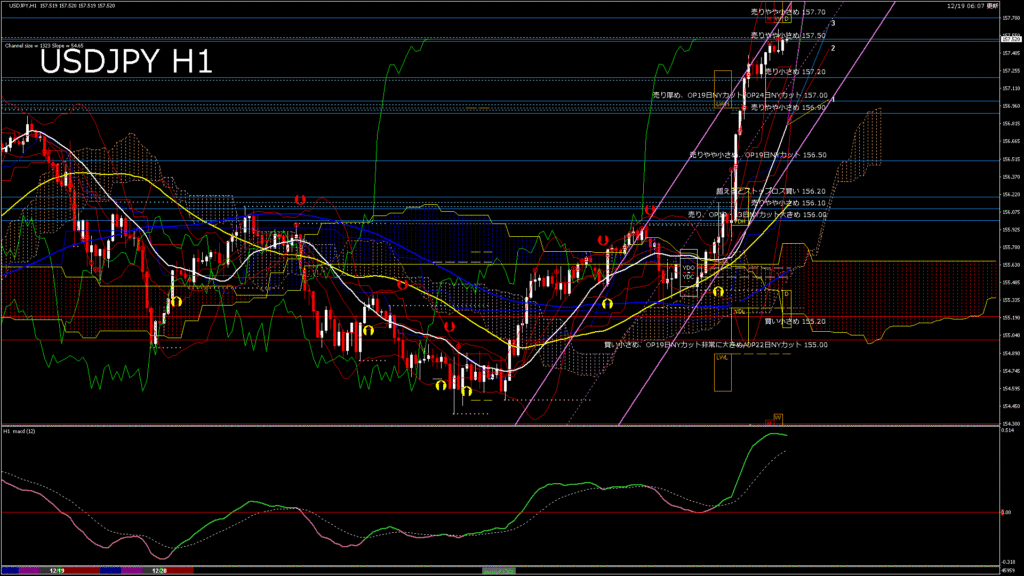 情報 USDJPY-H1移動平均線と現在値(RSI)-2025.12.22 11:00:00