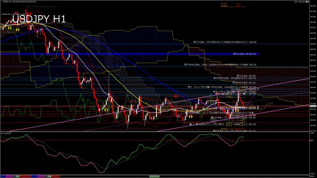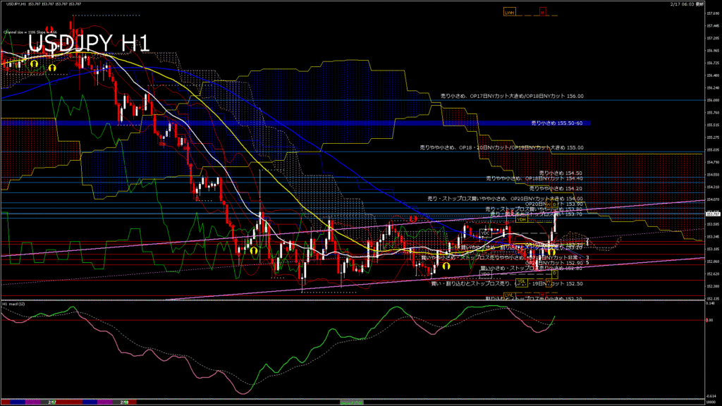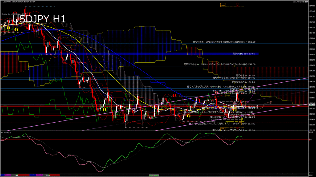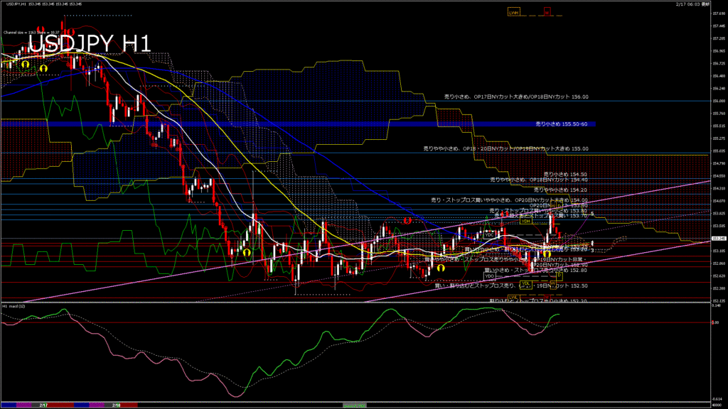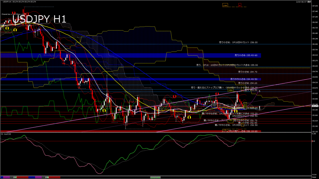 情報 USDJPY-H1移動平均線と現在値(RSI)-2026.2.18 9:00:00