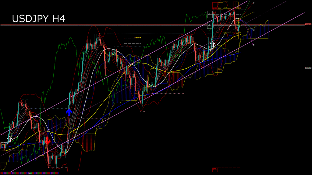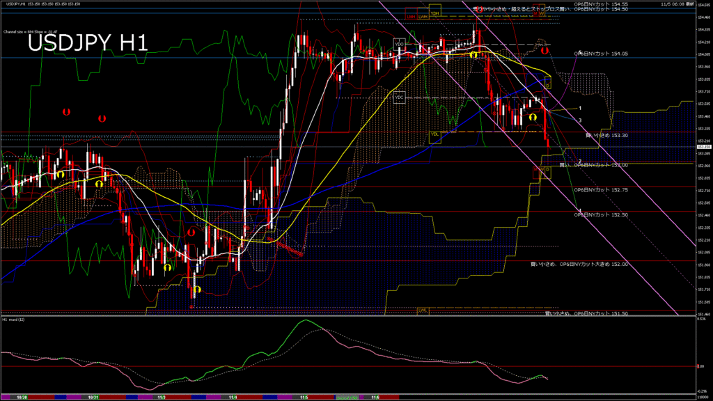 情報 USDJPY-H4移動平均線と現在値(RSI)-2025.11.5 11:00:05