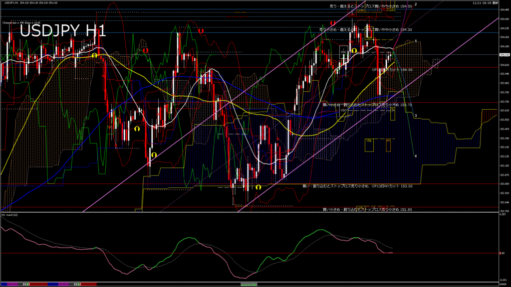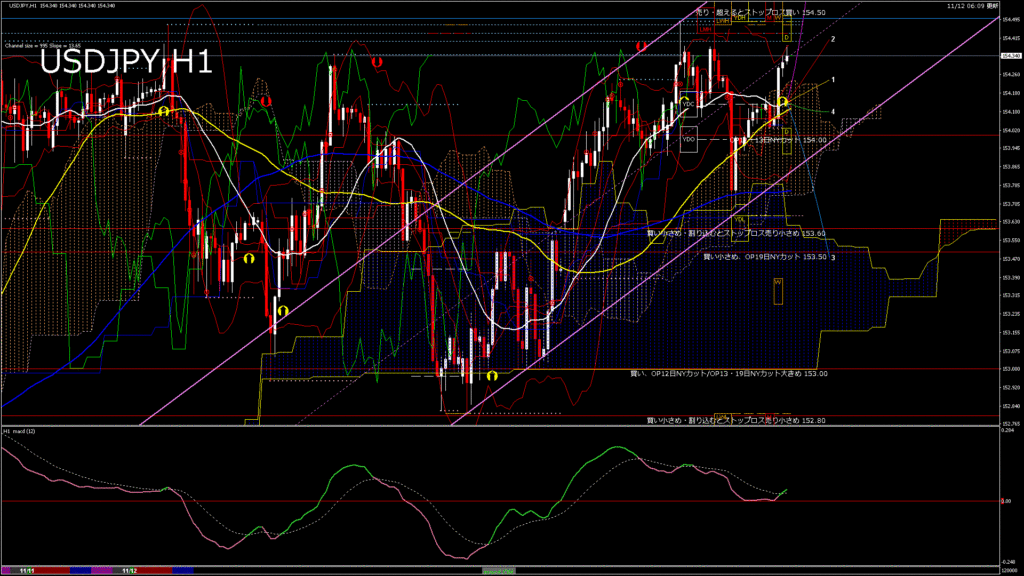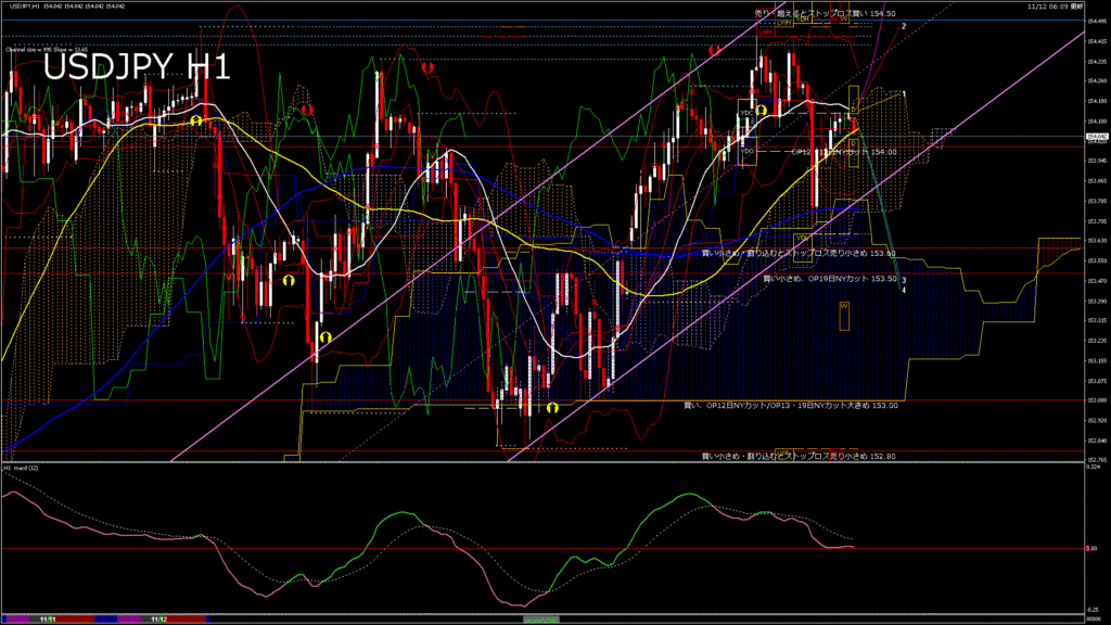 情報 USDJPY-H1移動平均線と現在値(RSI)-2025.11.12 12:00:00