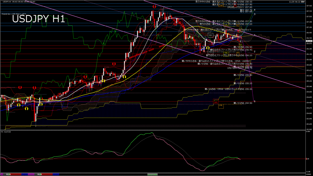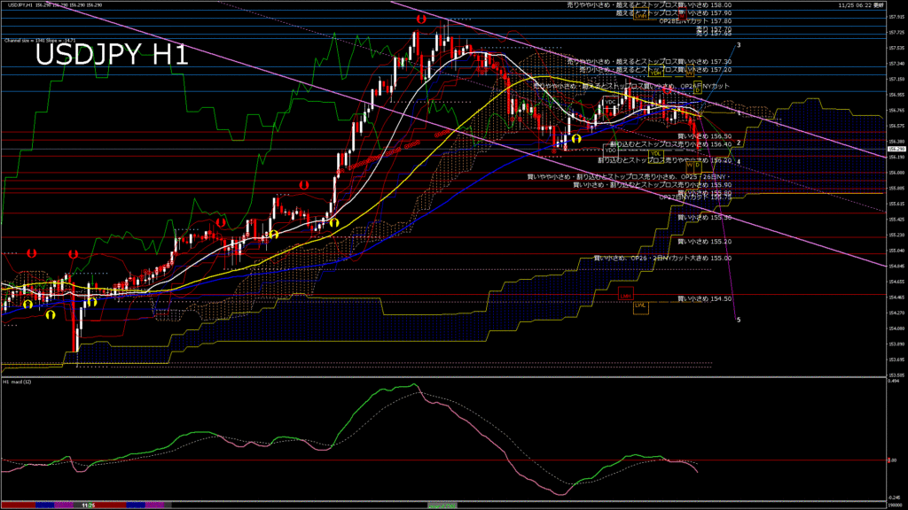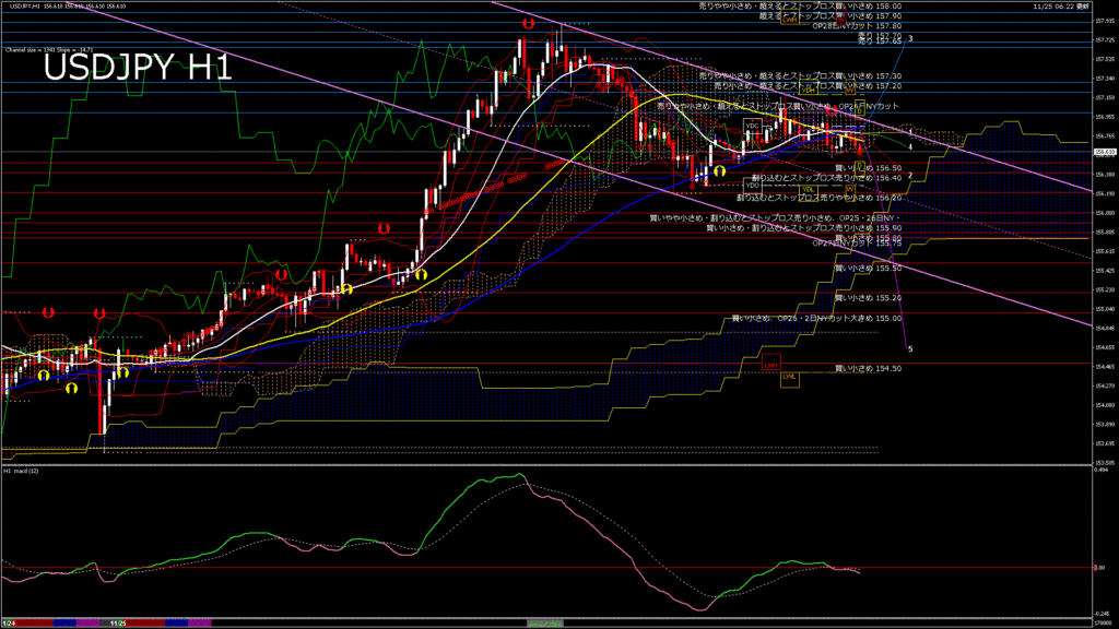 情報 USDJPY-H1移動平均線と現在値(RSI)-2025.11.25 20:00:00