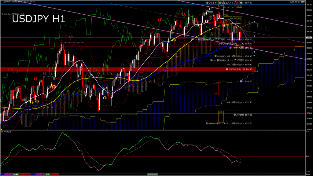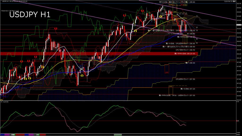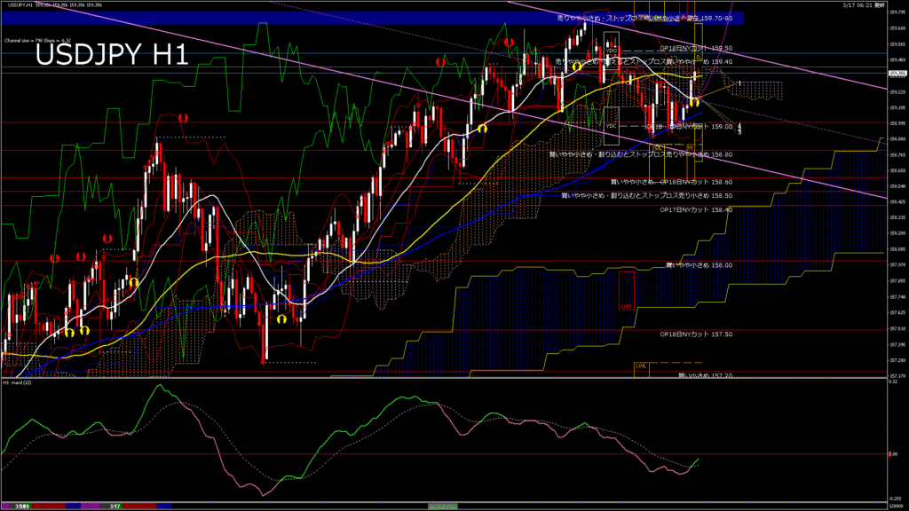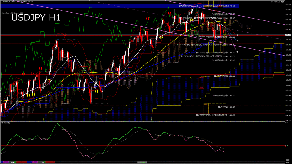 情報 USDJPY-H1移動平均線と現在値(RSI)-2026.3.17 13:00:00