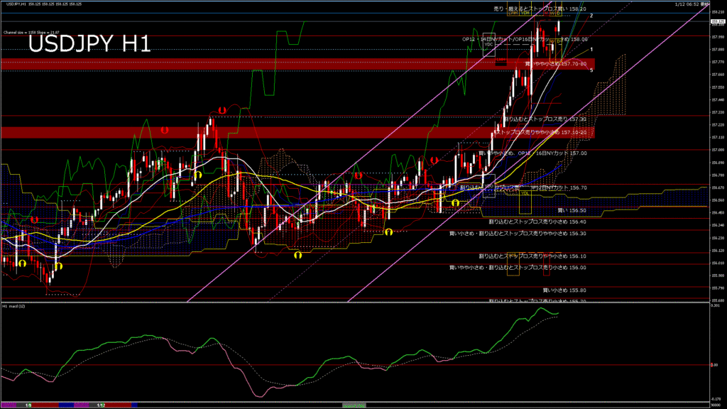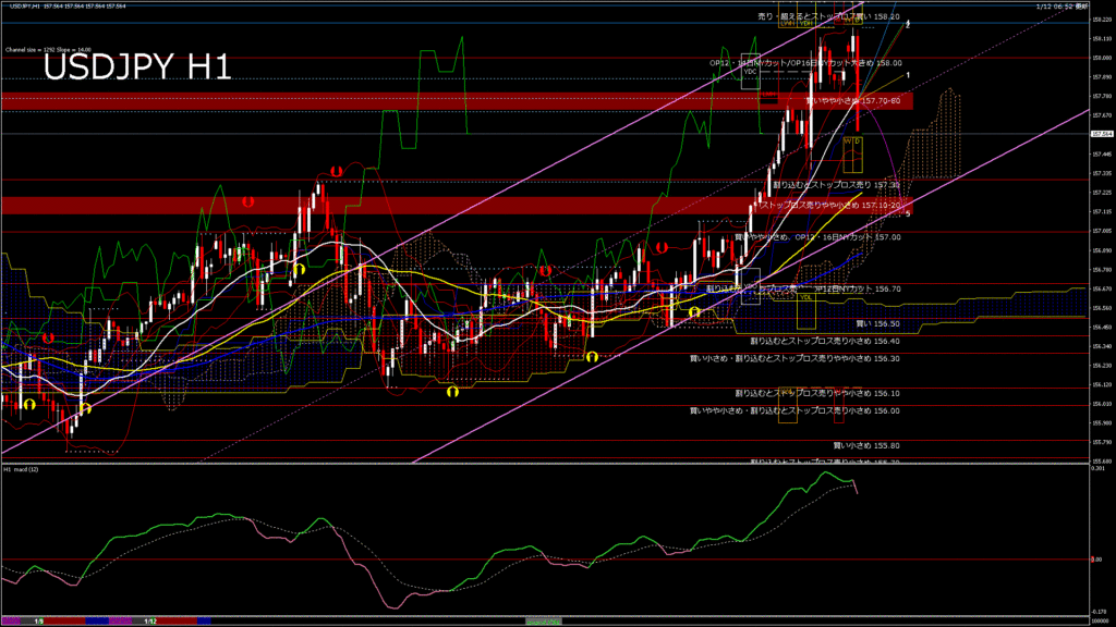 情報 USDJPY-H1移動平均線と現在値(RSI)-2026.1.12 18:00:00