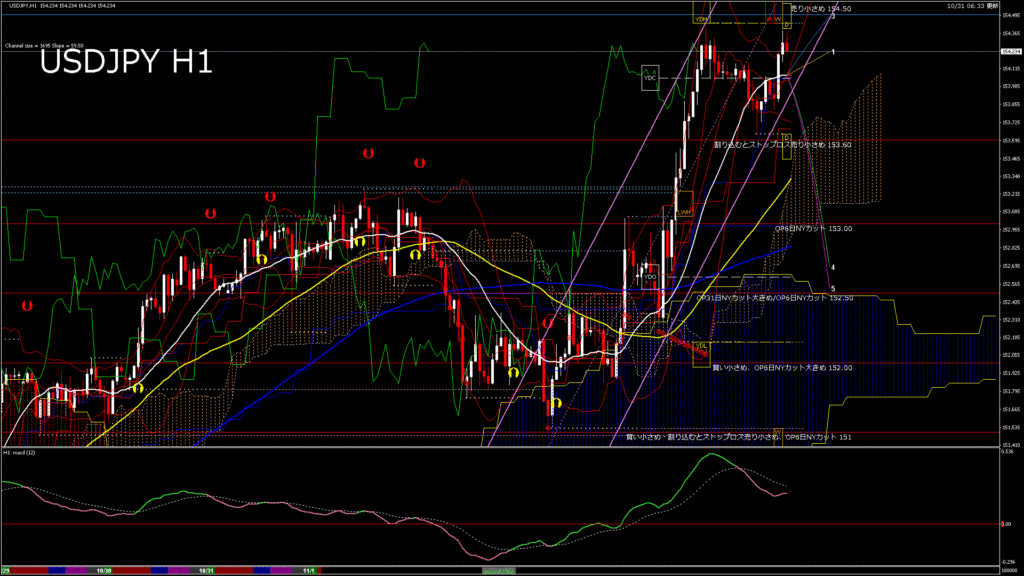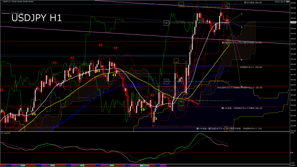 情報 USDJPY-H1移動平均線と現在値(RSI)-2025.11.1 1:00:00