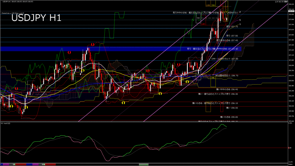 情報 USDJPY-H1移動平均線と現在値(RSI)-2026.1.12 11:00:00